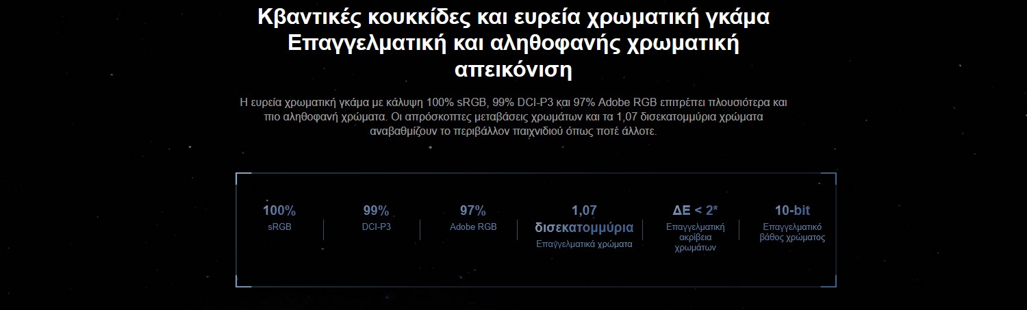 Χρωματική γκάμα: 99% DCI-P3/97% Adobe RGB/100% sRGB