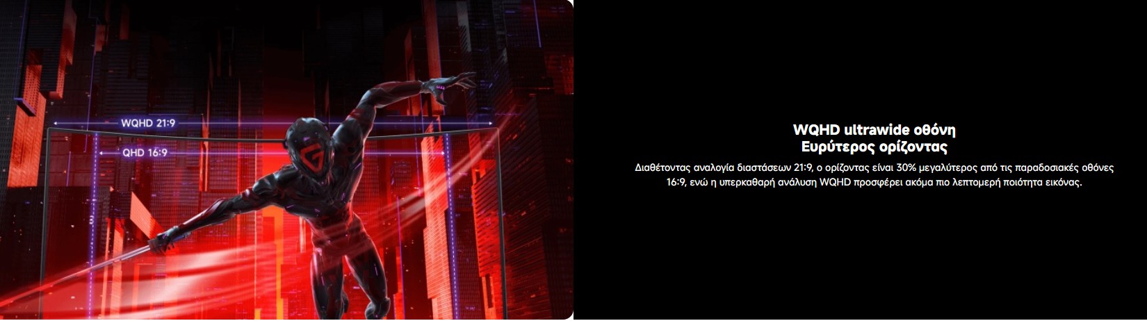 Με ανάλυση 3440 x 1440 στις 34 ίντσες, χρόνο απόκρισης 1 ms και λόγο αντίθεσης 4000:1.
