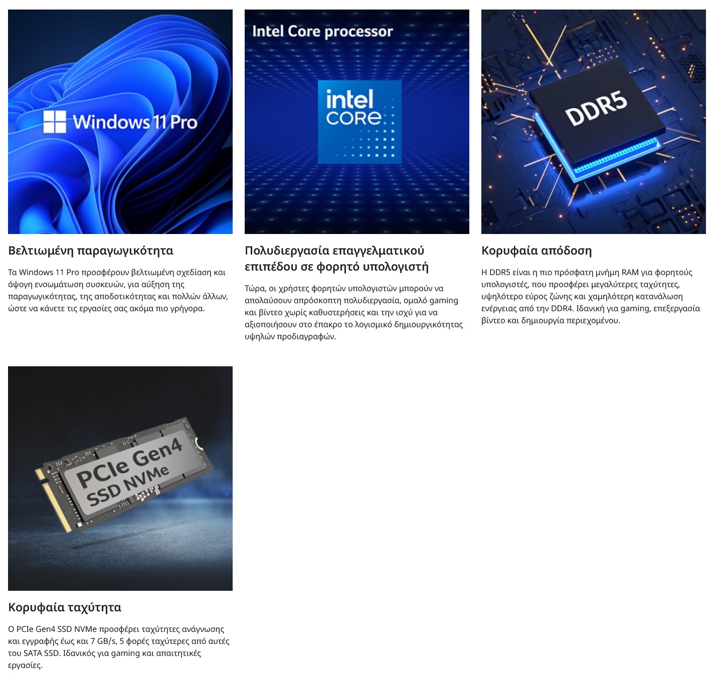 Συνδεσιμότητα : WiFi, Bluetooth, 2x USB 3.2 Type-A, 2x USB 3.2 Type-C, 4x USB, HDMI.