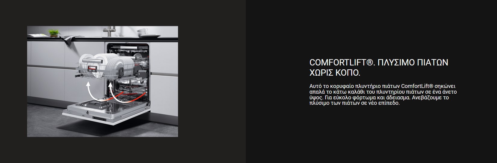 Ρυθμιζόμενο ύψος άνω καλαθιού, ακόμη και όταν είναι πλήρως φορτωμένο