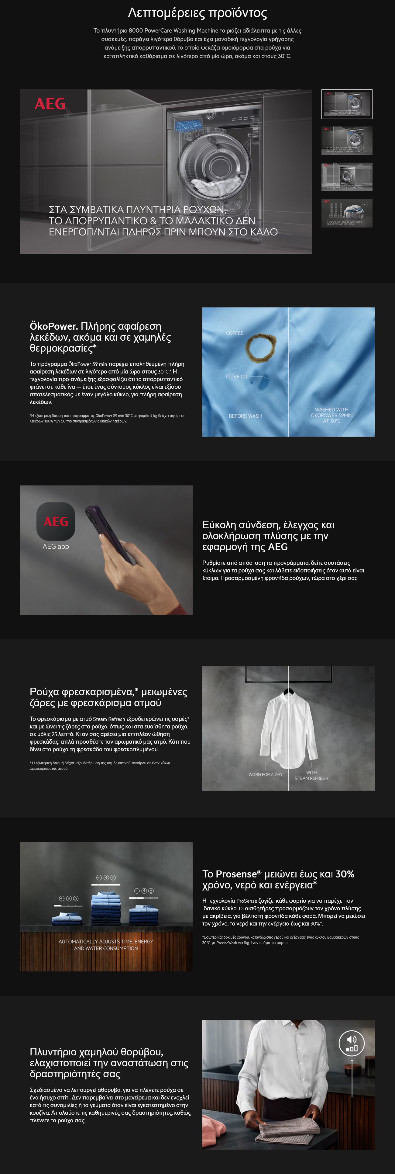 AEG Πλυντήριο ρούχων 8000 PowerCare 8 kg