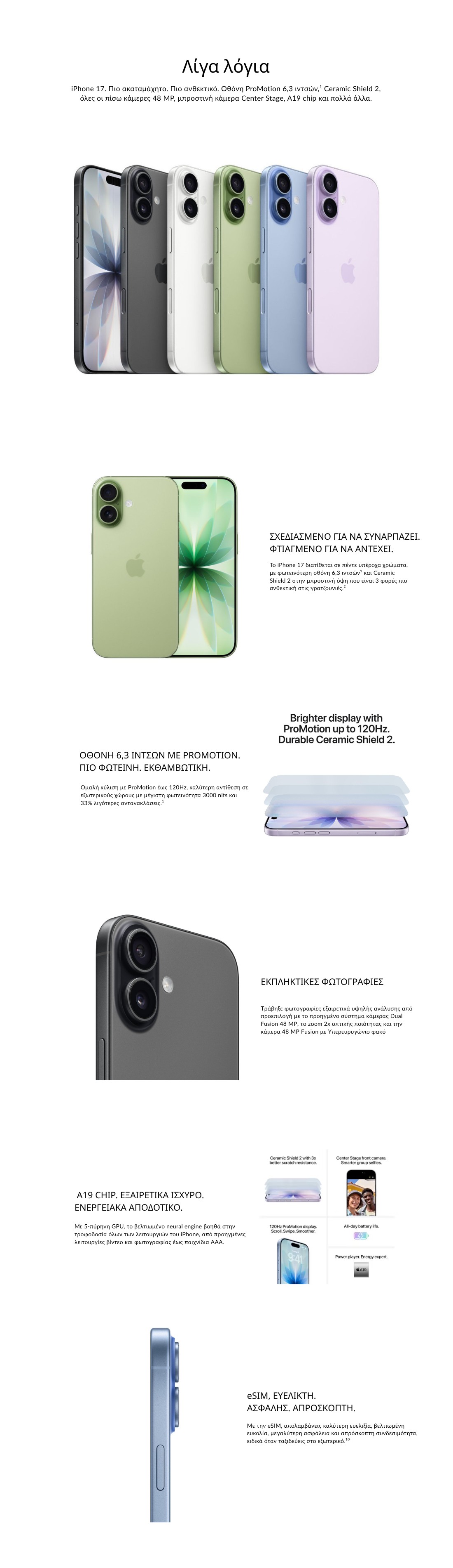 Πιο ακαταμάχητο. Πιο ανθεκτικό. Οθόνη ProMotion 6,3 ιντσών, Ceramic Shield 2, όλες οι πίσω κάμερες 48 MP, μπροστινή κάμερα Center Stage, A19 chip και πολλά άλλα.