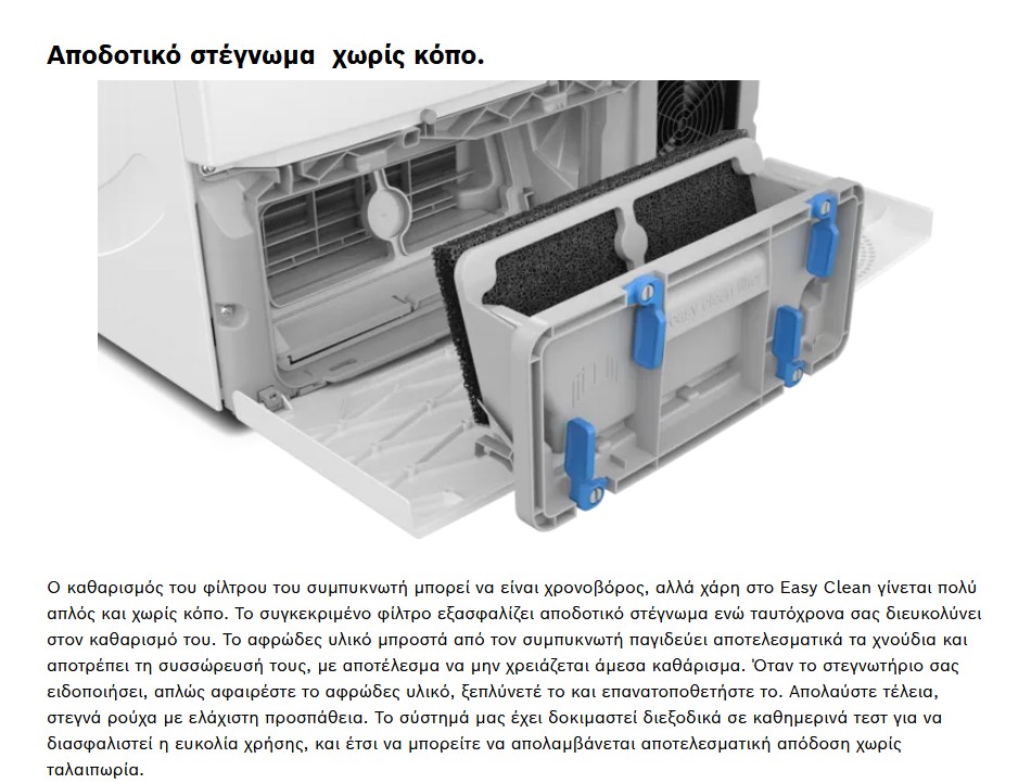 Φίλτρο Easy Clean: αποδοτικό στέγνωμα και εύκολη συντήρηση του φίλτρου.