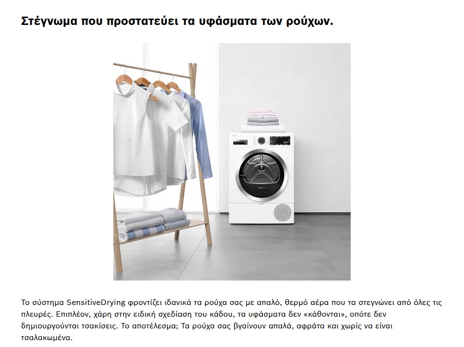Σύστημα SensitiveDrying: για απαλό στέγνωμα χωρίς να τσαλακώνει τα υφάσματα.