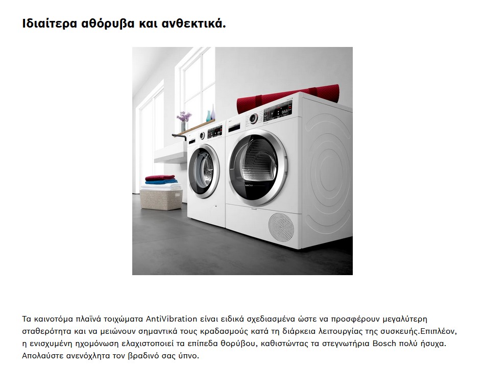 Με χωρητικότητα στεγνώματος 8 kg, ενεργειακή κλάση D και σύστημα SensitiveDrying για απαλό στέγνωμα χωρίς να τσαλακώνει τα υφάσματα.
