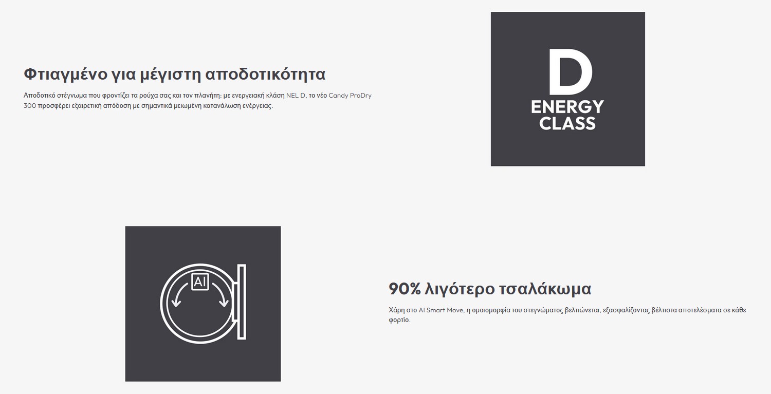 Με χωρητικότητα στεγνώματος 9 kg, ενεργειακή κλάση D, προηγμένο τηλεχειρισμό και έξυπνο περιεχόμενο.