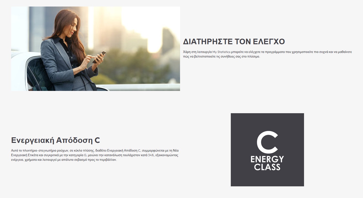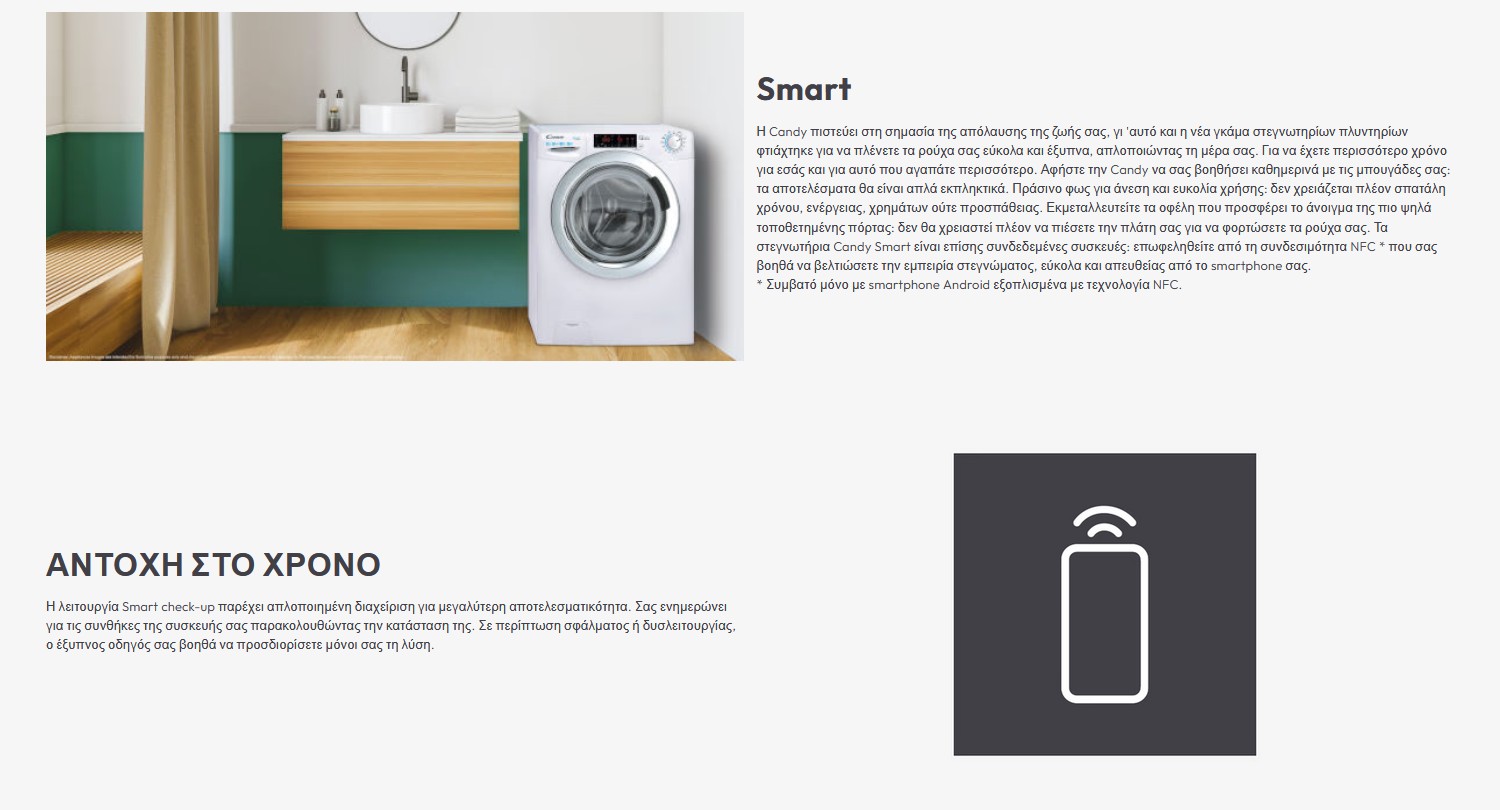 Ενεργειακής κλάσης C, χωρητικότητα πλύσης 8 kg, στεγνώματος 5 kg, λειτουργία Smart check-up και γρήγορα προγράμματα πλύσης.