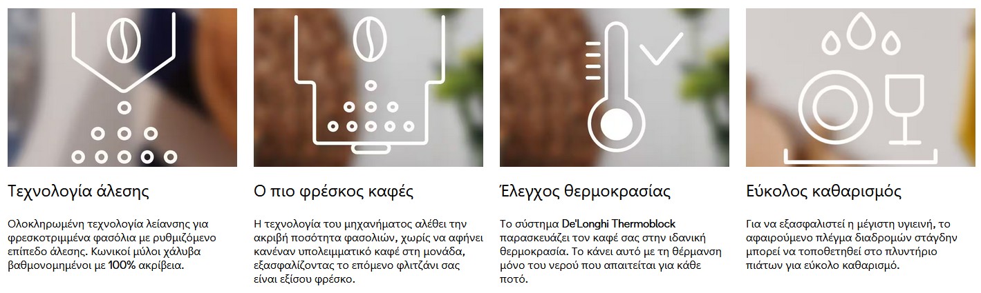 - Συνταγές: Espresso, Διπλός Espresso, Μεγάλος καφές