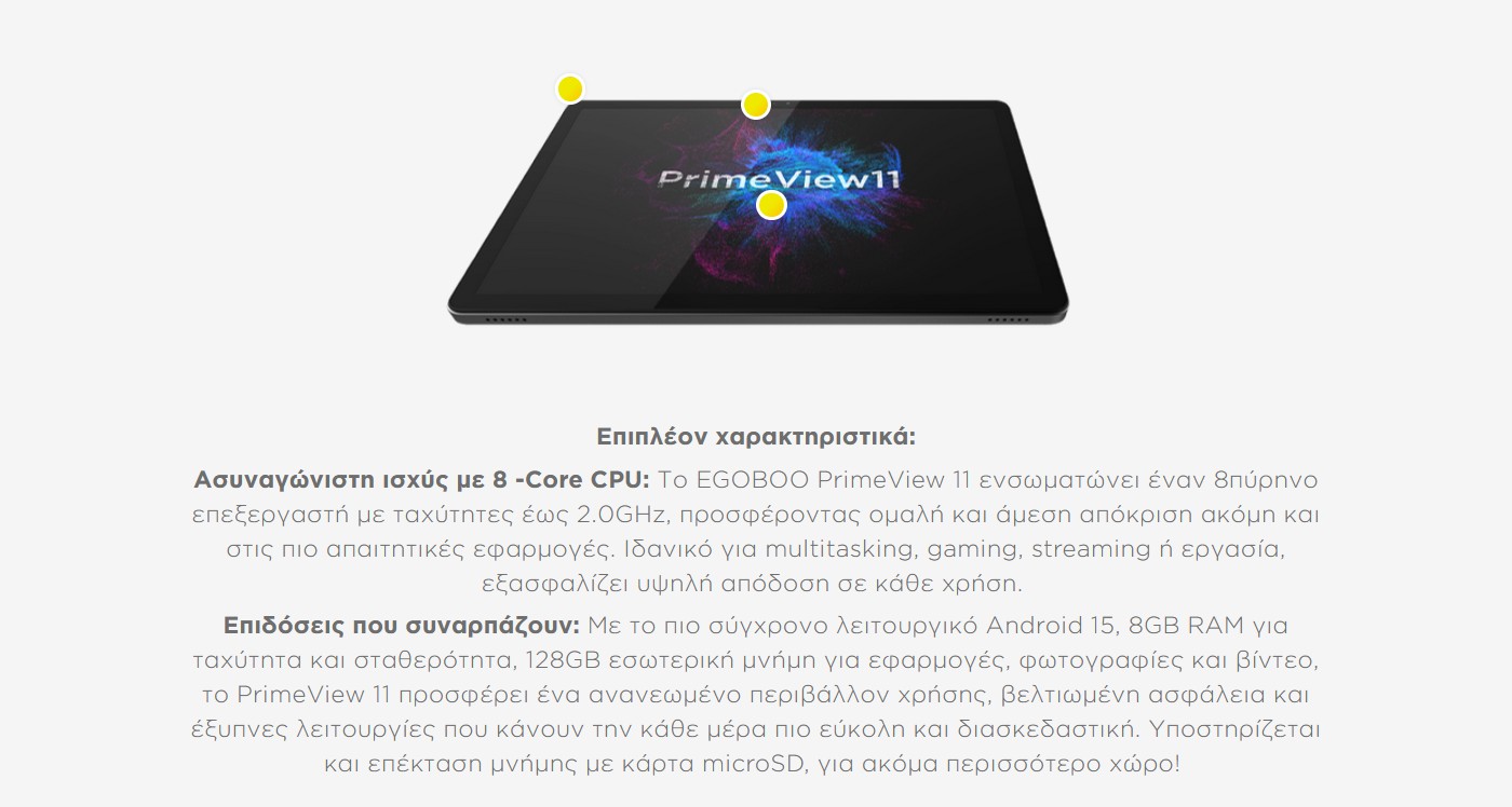 Με οθόνη 10.95", 8 GB Ram, 128 GB αποθηκευτικό χώρο και οκταπύρηνο επεξεργαστή.