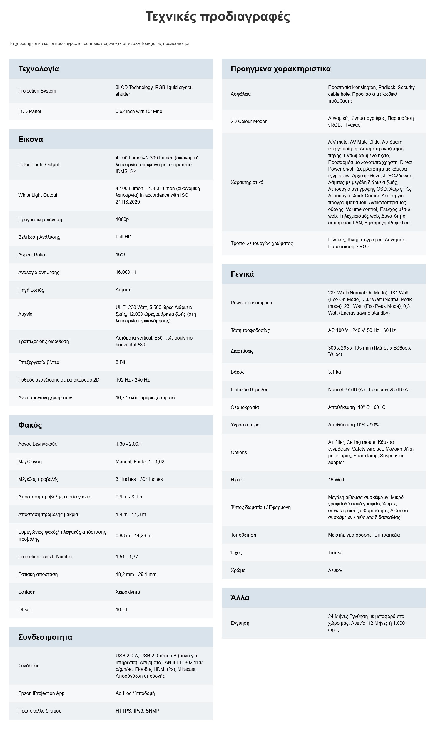 Η τεχνολογία 3LCD της Epson παρέχει εξίσου υψηλή φωτεινότητα έγχρωμων και λευκών αποχρώσεων (CLO) 4.100 lumen, ώστε να μπορείτε να βλέπετε ζωντανές και ρεαλιστικές εικόνες.