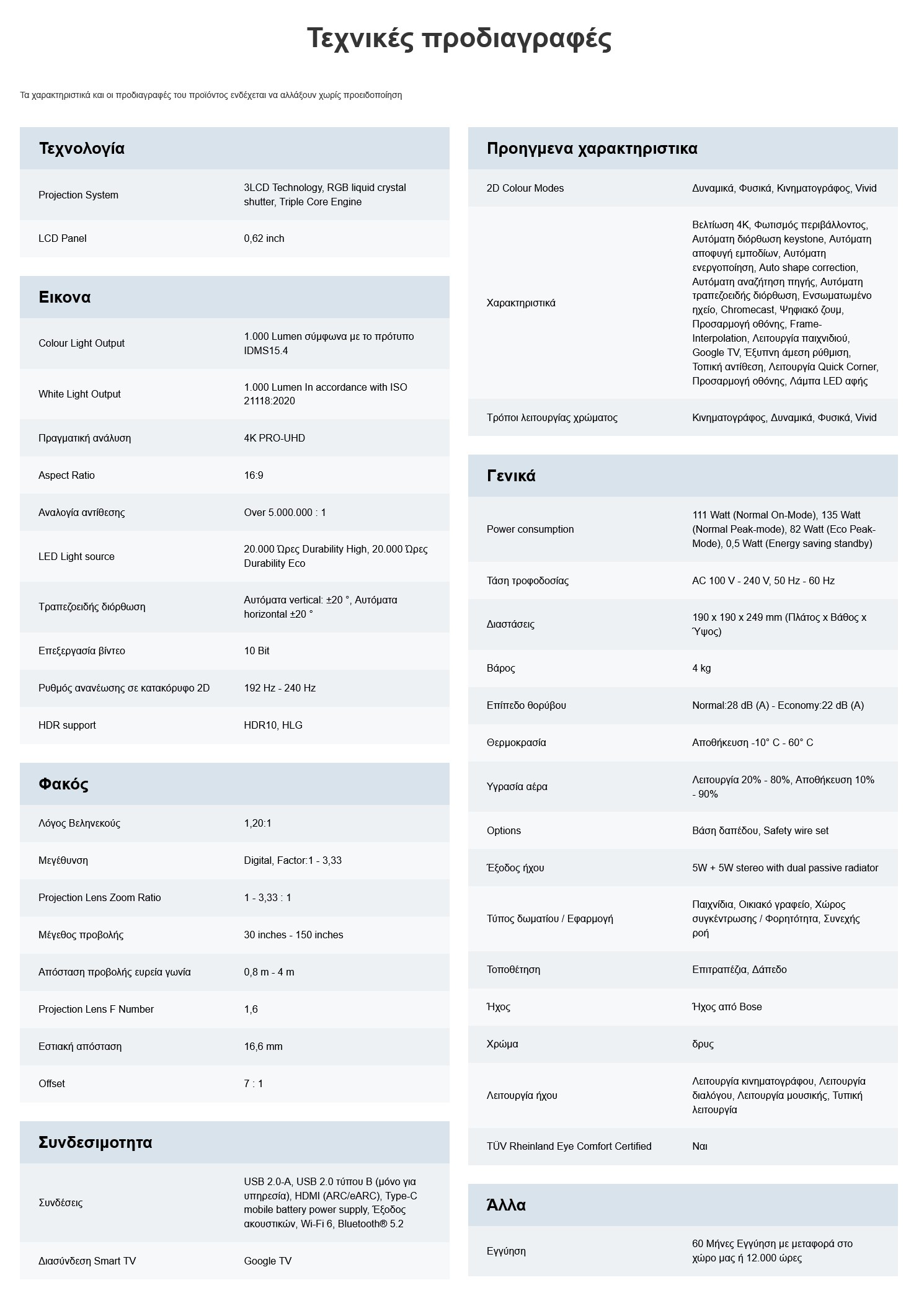 Εντυπωσιακή απεικόνιση με την τεχνολογία 3LCD x RGB-LED της Epson που εξασφαλίζει πιο ζωντανές εικόνες.