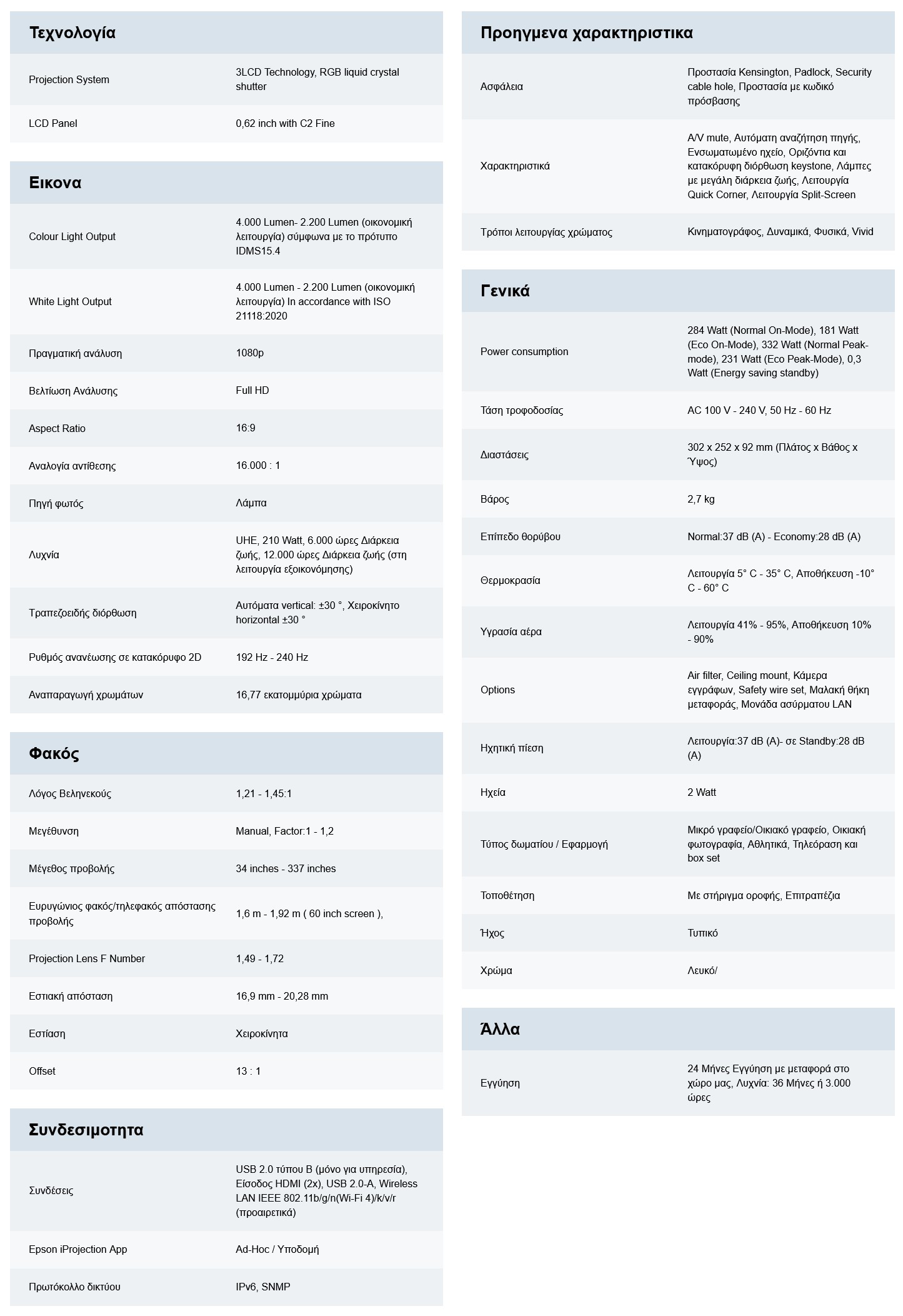 Η τεχνολογία 3LCD της Epson παρέχει εξίσου υψηλή φωτεινότητα έγχρωμων και λευκών αποχρώσεων (CLO) 4.000 lumen, ώστε να μπορείτε να βλέπετε ζωντανές και ρεαλιστικές εικόνες.