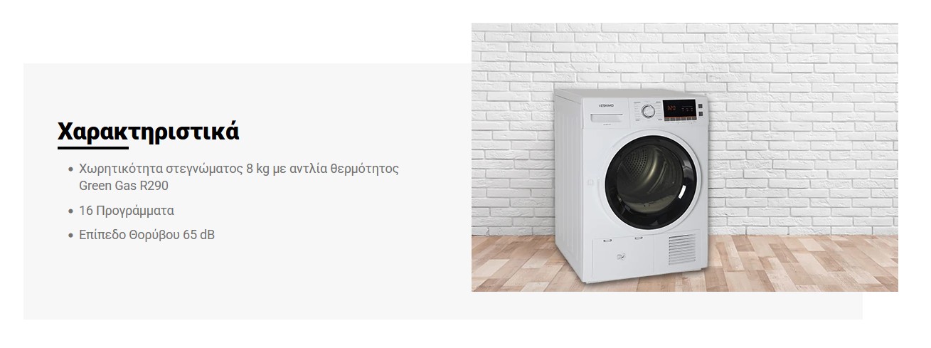 Χωρητικότητα (Kg) : 8 kg με αντλία θερμότητος Green Gas R290