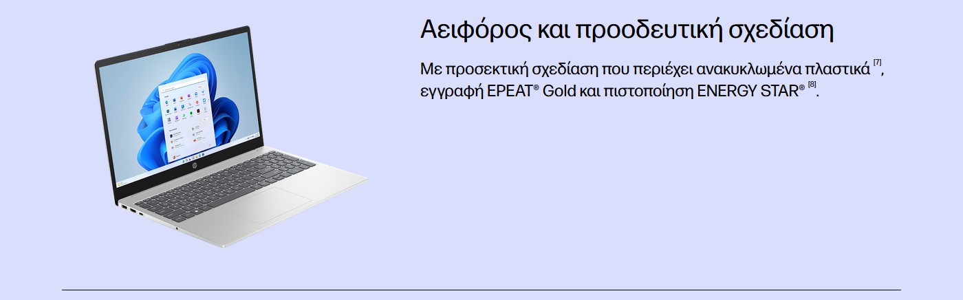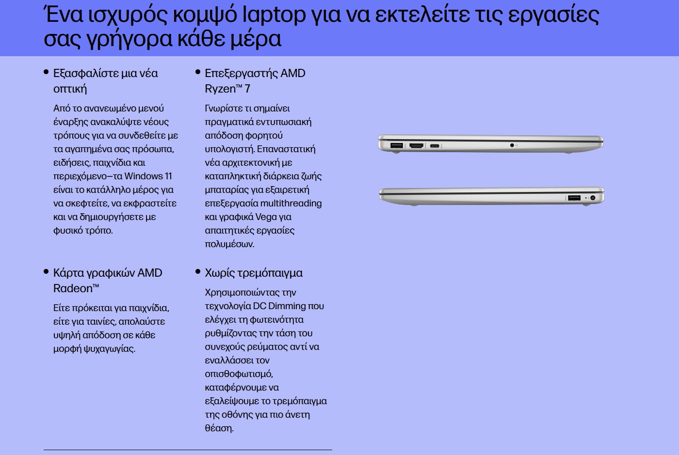 Φορητός υπολογιστής 15.6 ιντσών, με AMD Ryzen 7 επεξεργαστή, 16 GB Ram, 512 GB SSD σκληρό δίσκο και Windows 11 Home.