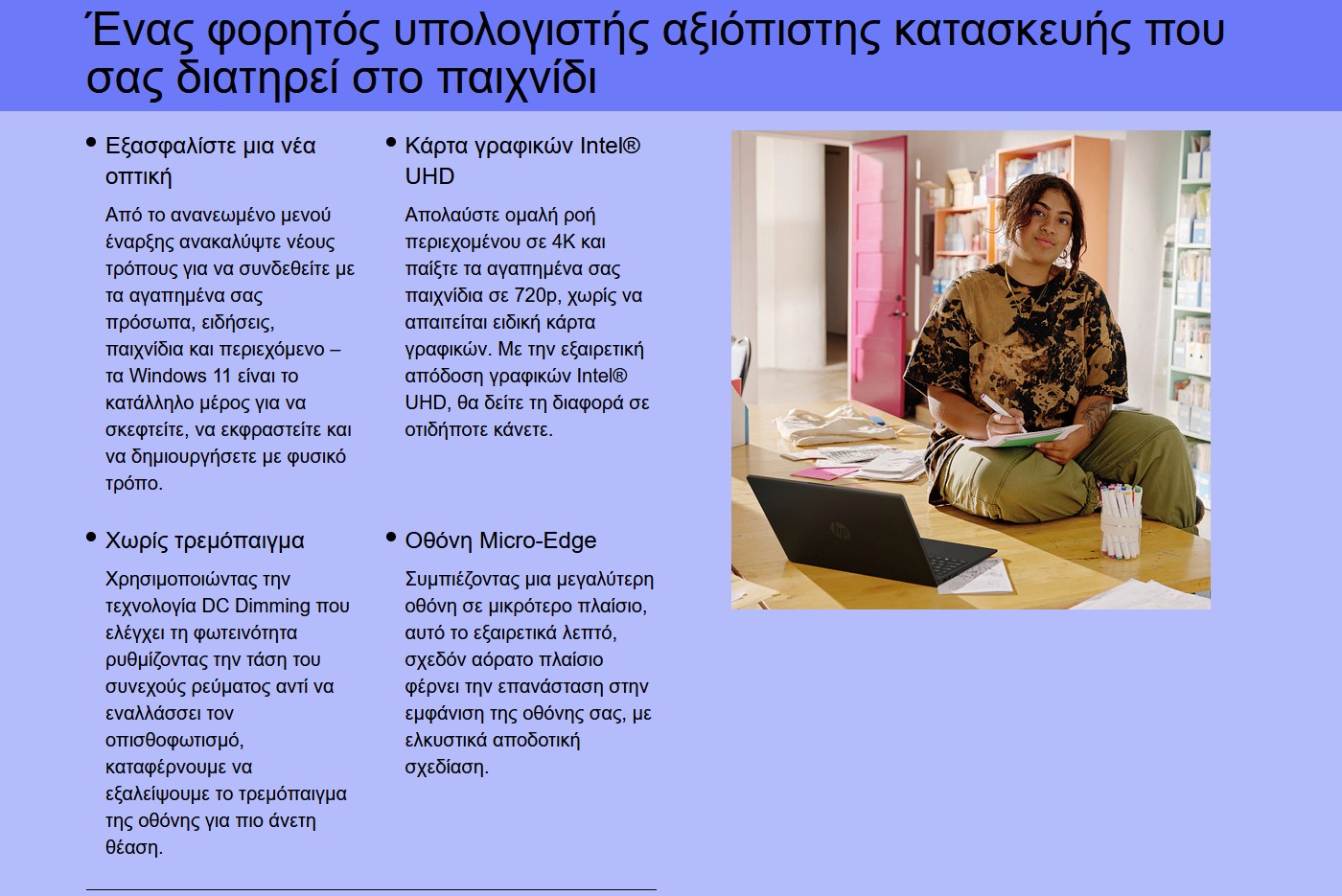 Συνδεσιμότητα : Bluetooth 5.3, 1xUSB-C/2xUSB-A, Wi-Fi, HDMI, Κάμερα HD 720p.