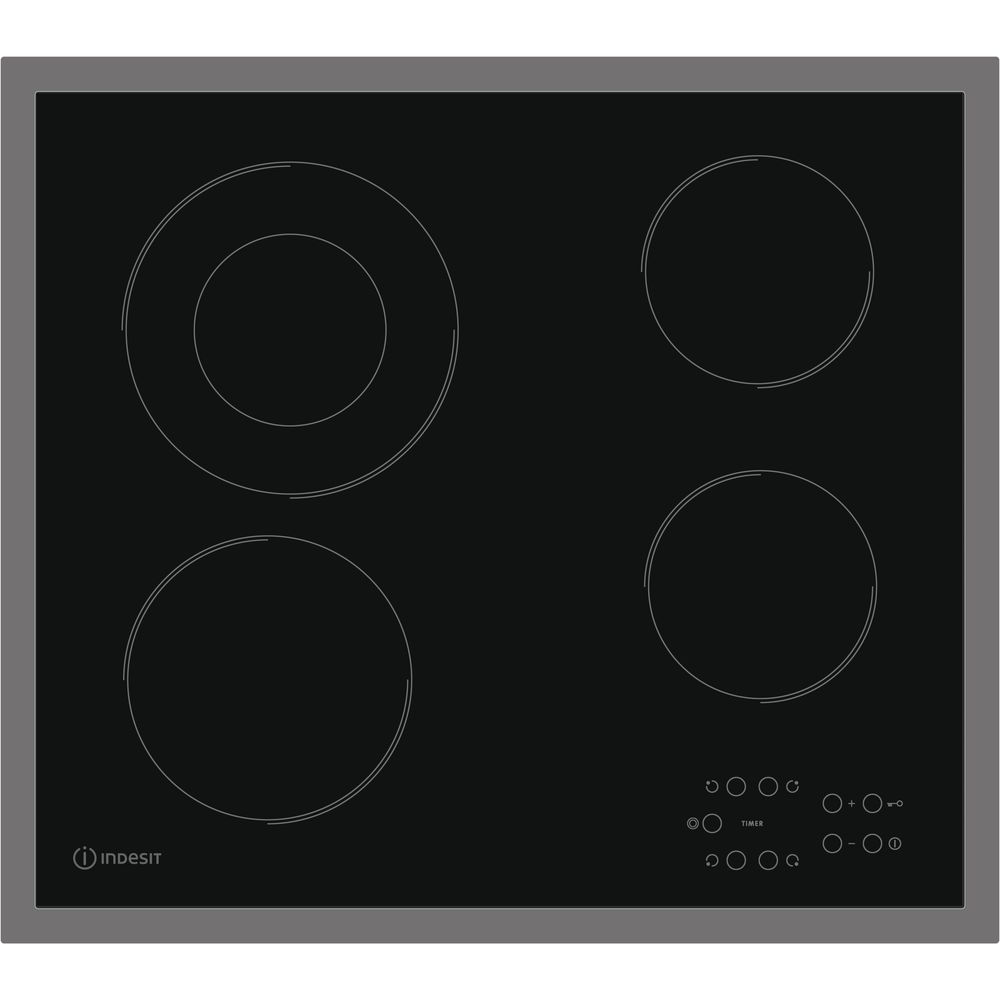 Εστία Κεραμική RI 261 X της INDESIT με περιμετρικό πλαίσιο, διακόπτες αφής, 5 ζώνες μαγειρέματος και κλείδωμα για παιδιά.
