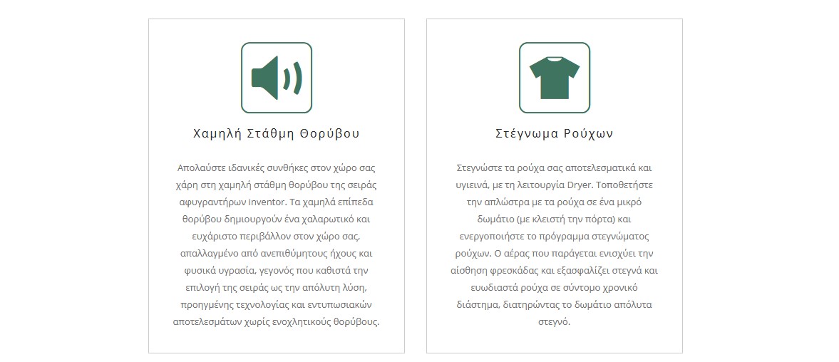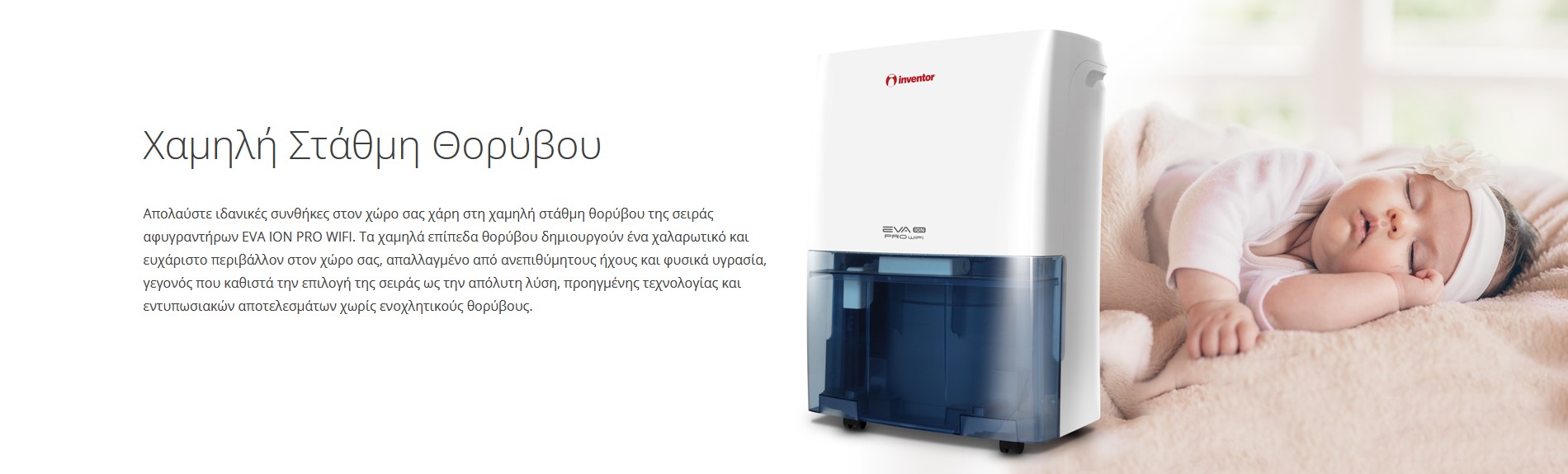 Εξασφαλίστε ευχάριστο περιβάλλον χωρίς υγρασία και χωρίς ενοχλητικούς θορύβους χάρη στη Χαμηλή Στάθμη Θορύβου.