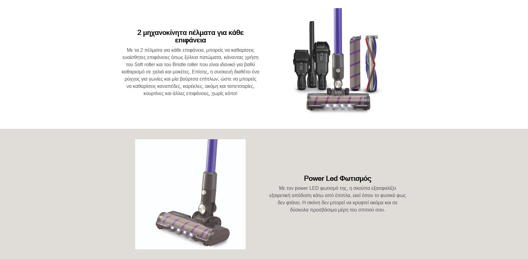 -Bristle roller: Για βαθύ καθαρισμό σε χαλιά και μοκέτες.