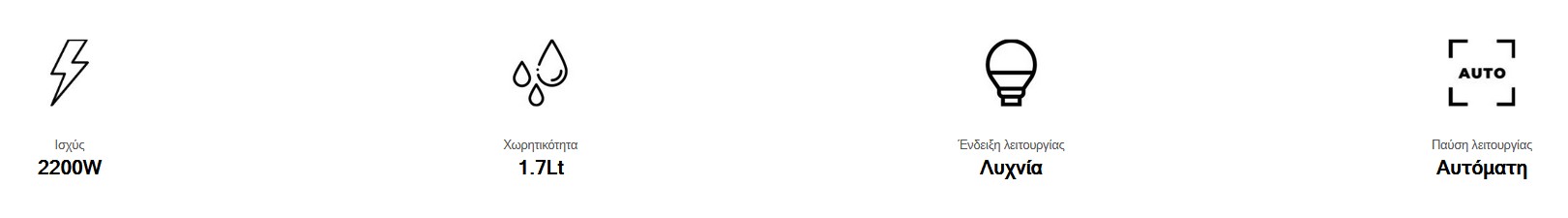 Με χωρητικότητα 1.7lt, ισχύoς 2200 Watt με αυτόματη παύση λειτουργίας.