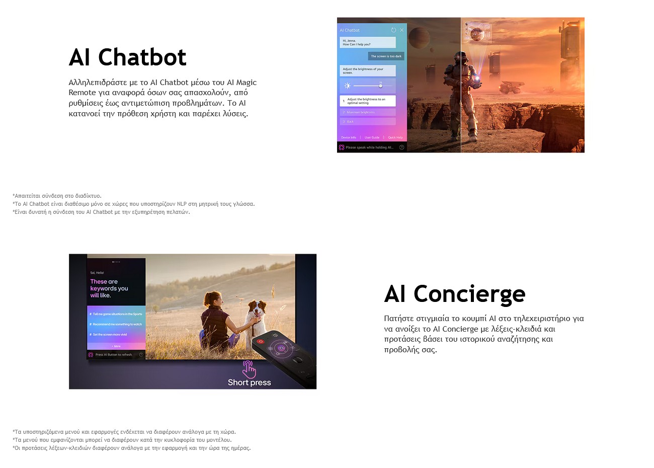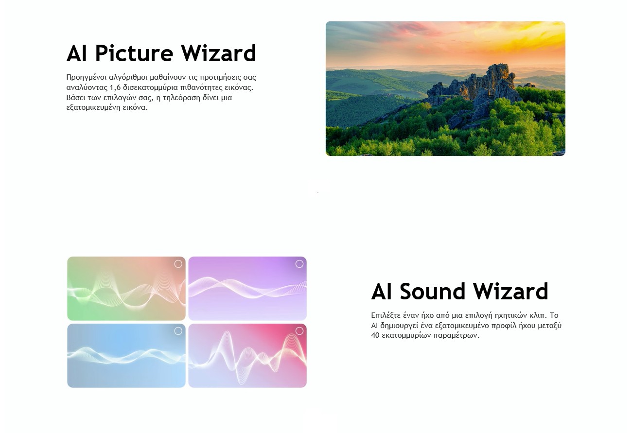 Ελέγχετε την τηλεόρασή σας εύκολα με το AI Magic Remote - δεν απαιτείται επιπλέον συσκευή! Με έναν αισθητήρα κίνησης και τροχό κύλισης, στοχεύστε και κάντε κλικ, drag & drop, για να το χρησιμοποιήσετε όπως ένα air mouse ή απλώς μιλήστε με φωνητικές εντολές.