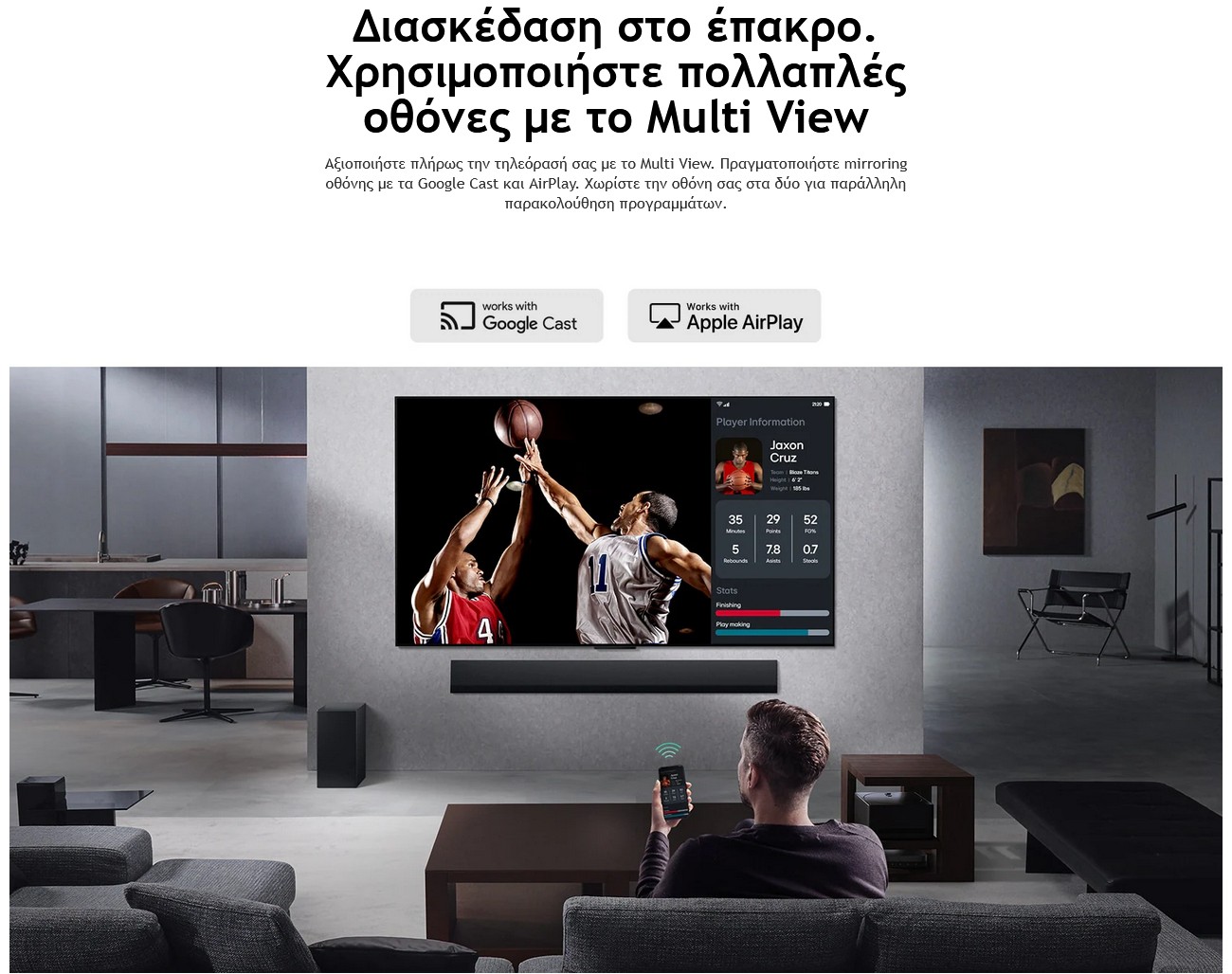 Οι LG NanoCell TV και τα LG Soundbar ταιριάζουν τέλεια, είναι σχεδιασμένα για να συνεργάζονται αρμονικά ώστε να παρέχουν περιβάλλοντα ήχου multi-surround.