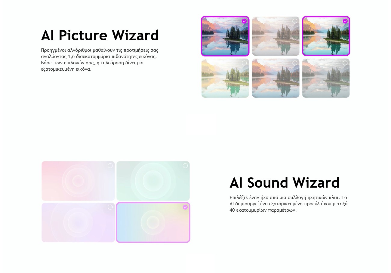 Με σημαντικές βελτιώσεις στην απόδοση, η ταχύτερη επεξεργασία από τον επεξεργαστή alpha 7 AI Processor Gen8 προσφέρει τώρα ποιότητα εικόνας 4K με πολύ καλύτερη ευκρίνεια και βάθος από ποτέ άλλοτε.