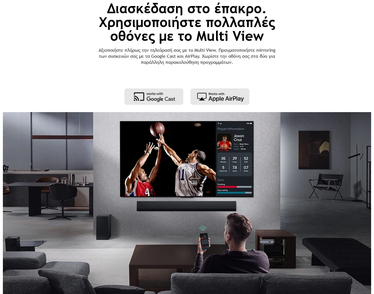 Ο πανίσχυρος επεξεργαστής της LG ενισχύει την ανάλυση στην αρχική ποιότητα. Απολαύστε τη βελτιωμένη ανάλυση, φωτεινότητα και ευκρίνεια του 4K Super Upscaling.