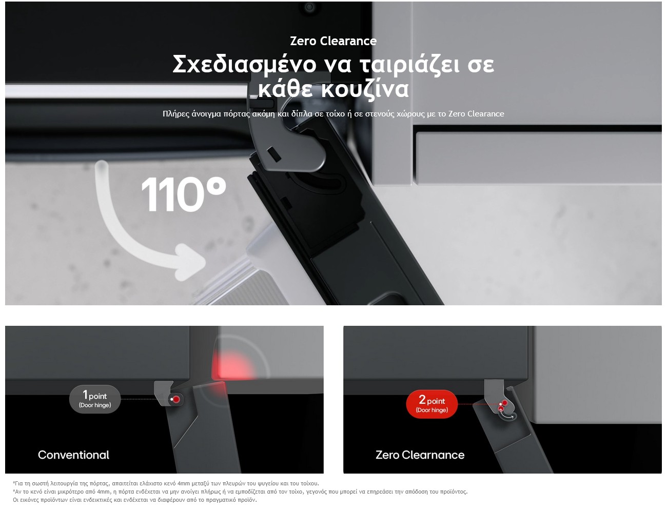 Πλήρες άνοιγμα πόρτας ακόμη και δίπλα σε τοίχο ή σε στενούς χώρους με το Zero Clearance.