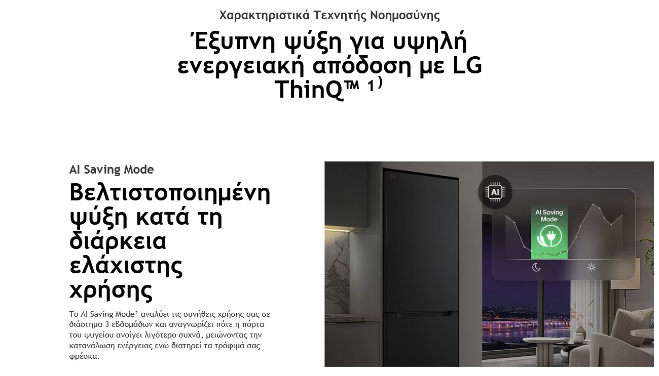 Το AI Saving Mode αναλύει τις συνήθεις χρήσης σας σε διάστημα 3 εβδομάδων και αναγνωρίζει πότε η πόρτα του ψυγείου ανοίγει λιγότερο συχνά, μειώνοντας την κατανάλωση ενέργειας ενώ διατηρεί τα τρόφιμά σας φρέσκα.