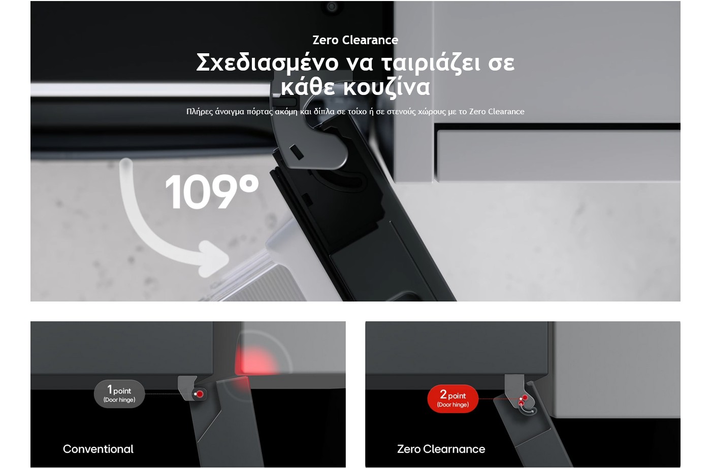 Πλήρες άνοιγμα πόρτας ακόμη και δίπλα σε τοίχο ή σε στενούς χώρους με το Zero Clearance.