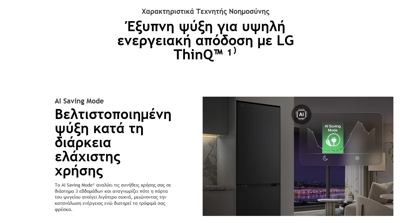 Το AI Saving Mode αναλύει τις συνήθεις χρήσης σας σε διάστημα 3 εβδομάδων και αναγνωρίζει πότε η πόρτα του ψυγείου ανοίγει λιγότερο συχνά, μειώνοντας την κατανάλωση ενέργειας ενώ διατηρεί τα τρόφιμά σας φρέσκα.