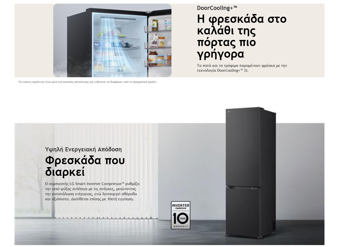 Ο συμπιεστής LG Smart Inverter Compressor ρυθμίζει την ισχύ ψύξης ανάλογα με τις ανάγκες, μειώνοντας την κατανάλωση ενέργειας, ενώ λειτουργεί αθόρυβα και αξιόπιστα. Διατίθεται επίσης με 10ετή εγγύηση.