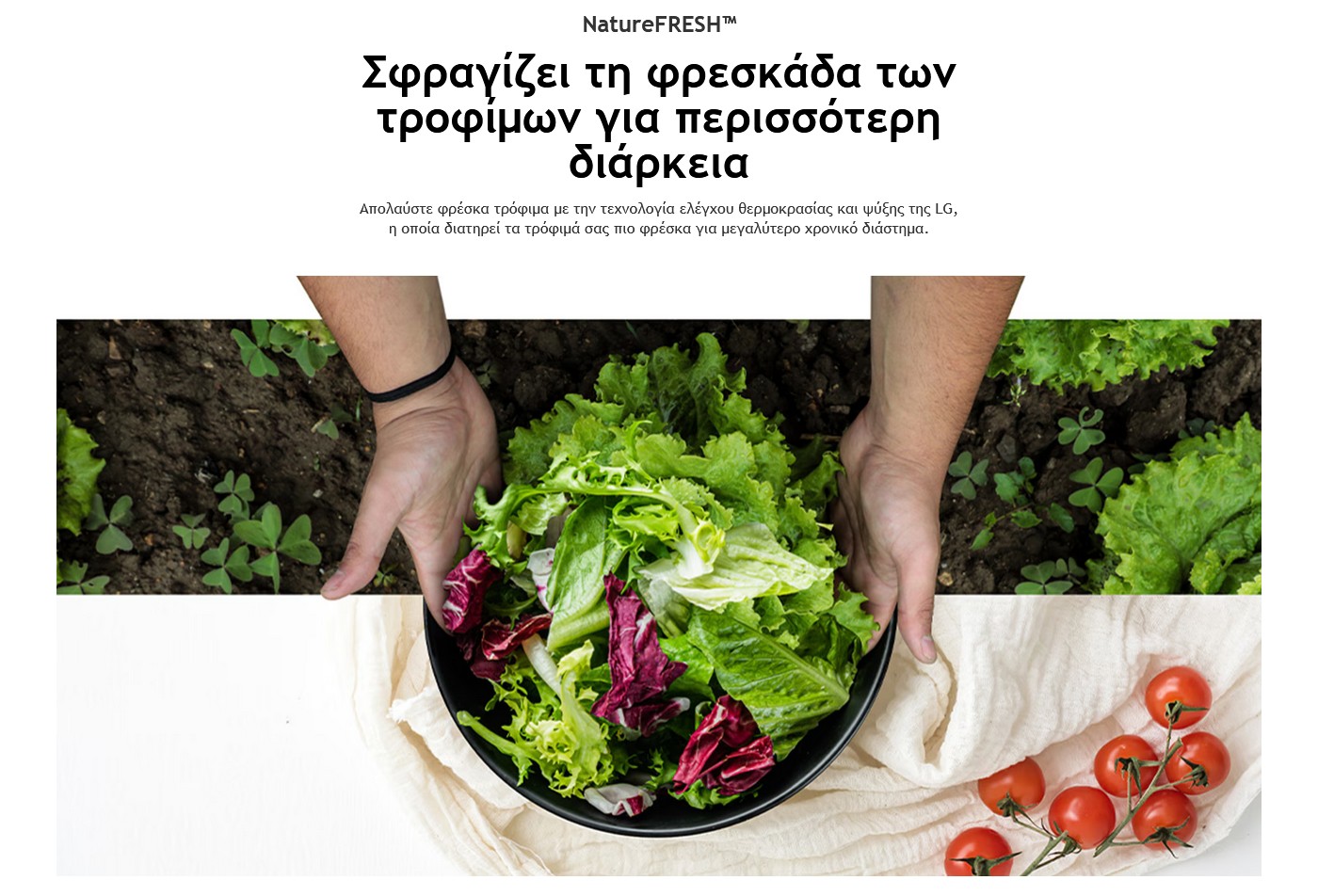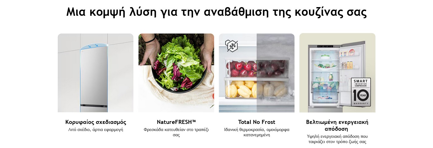Απολαύστε φρέσκα τρόφιμα με την τεχνολογία ελέγχου θερμοκρασίας και ψύξης της LG, η οποία διατηρεί τα τρόφιμά σας πιο φρέσκα για μεγαλύτερο χρονικό διάστημα.