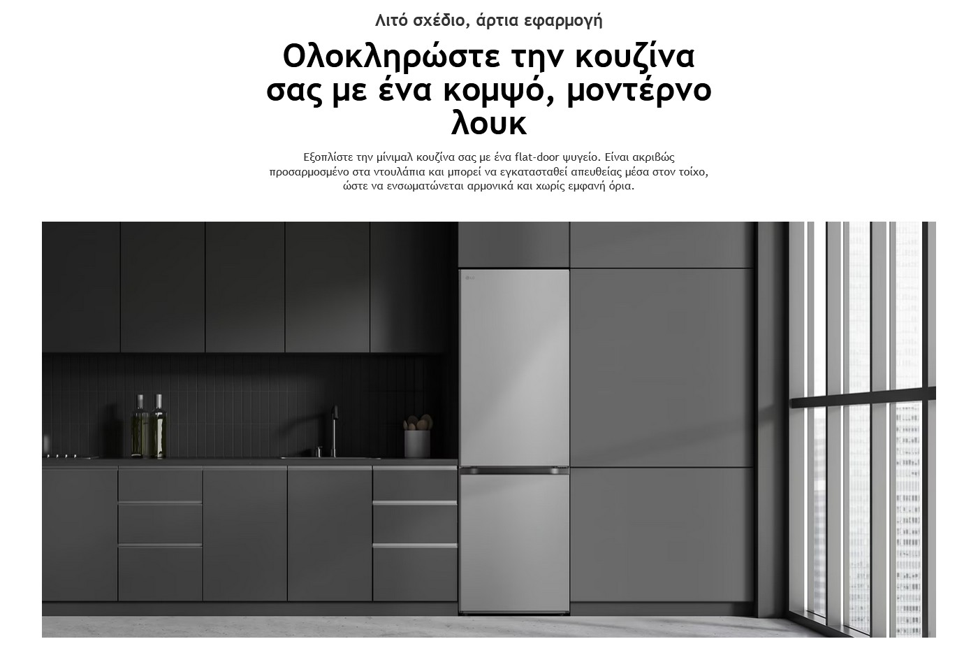 Εξοπλίστε την μίνιμαλ κουζίνα σας με ένα flat-door ψυγείο. Είναι ακριβώς προσαρμοσμένο στα ντουλάπια και μπορεί να εγκατασταθεί απευθείας μέσα στον τοίχο, ώστε να ενσωματώνεται αρμονικά και χωρίς εμφανή όρια.