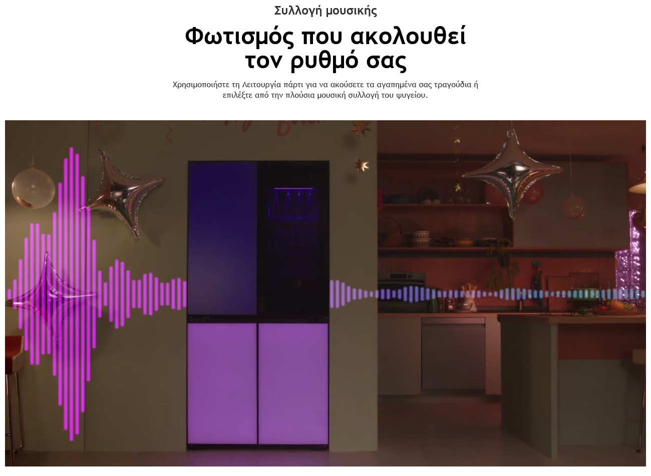 Χρησιμοποιήστε τη Λειτουργία πάρτι για να ακούσετε τα αγαπημένα σας τραγούδια ή επιλέξτε από την πλούσια μουσική συλλογή του ψυγείου.