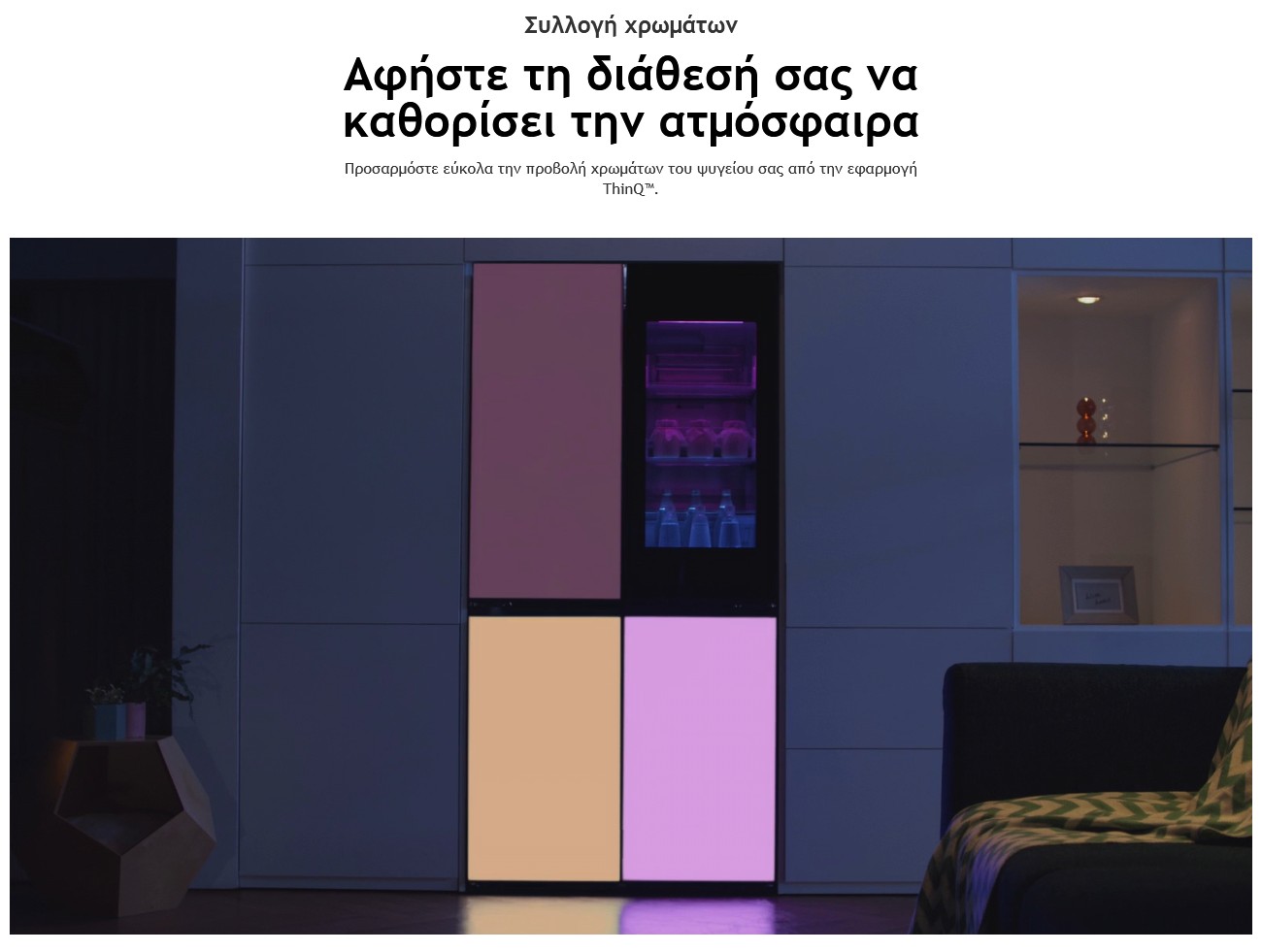 Επιλογή χρωμάτων στις πόρτες LED, μέσω της εφαρμογής ThinQ.