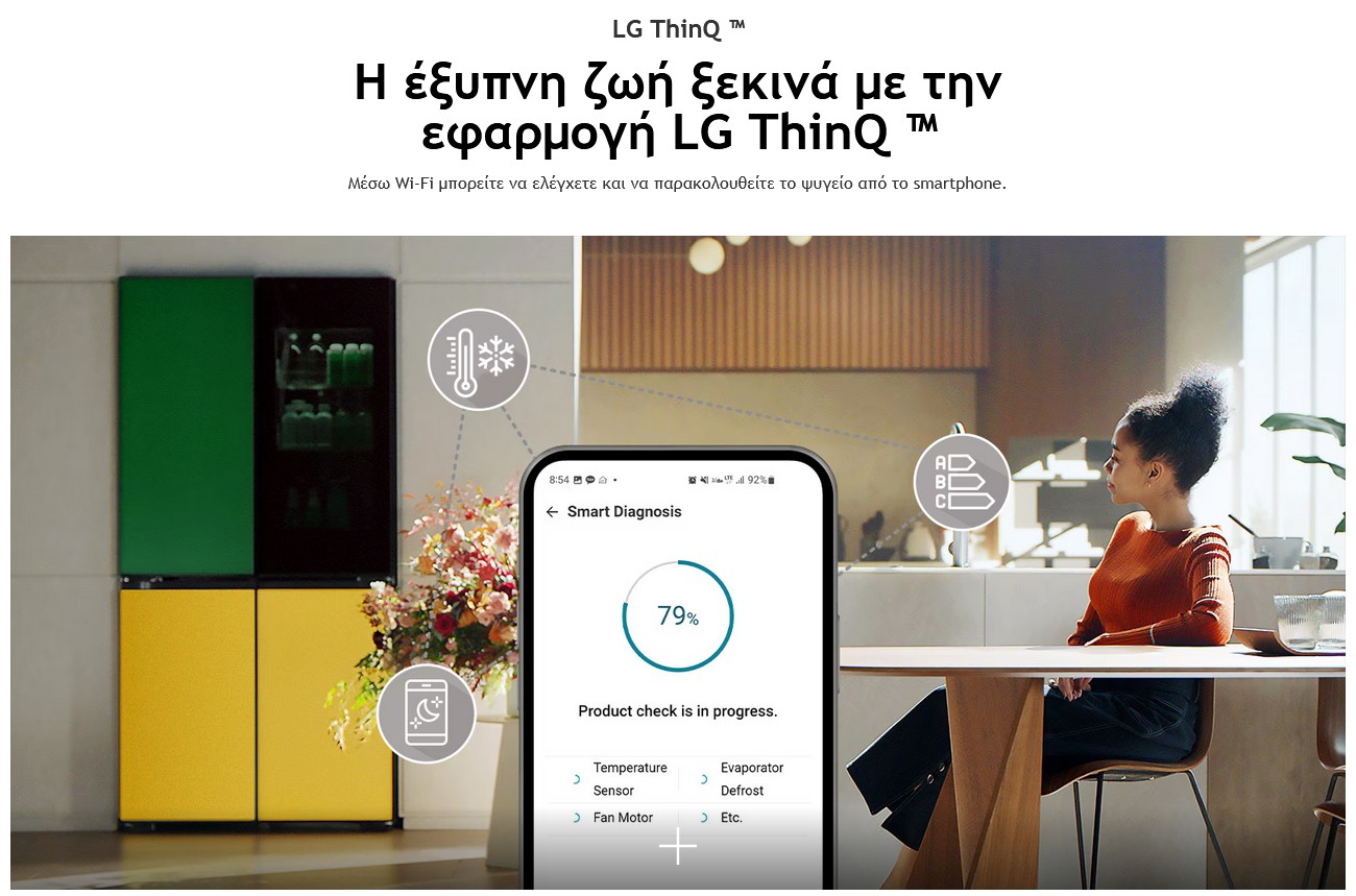 Συνολικής μεικτής χωρητικότητας 683 lt, ενεργειακής κλάσης E, Total No Frost και δυνατότητα επιλογής χρωμάτων στις πόρτες LED, μέσω της εφαρμογής ThinQ.