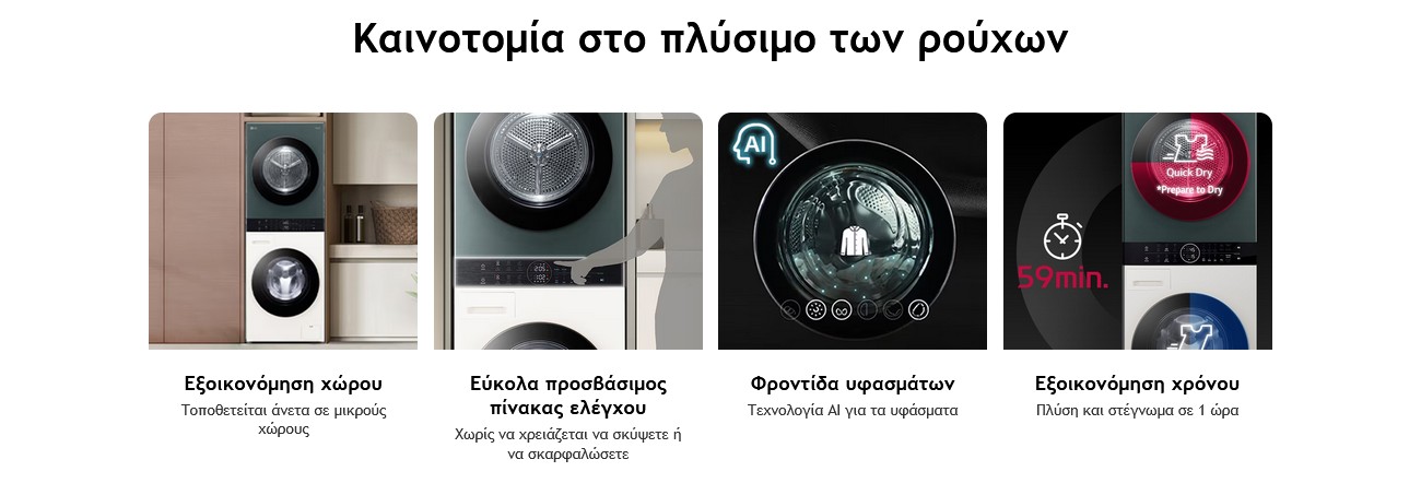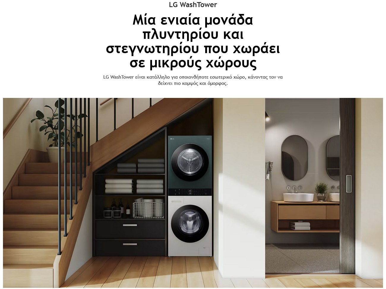 LG WashTower είναι κατάλληλο για οποιονδήποτε εσωτερικό χώρο, κάνοντας τον να δείχνει πιο κομψός και όμορφος.