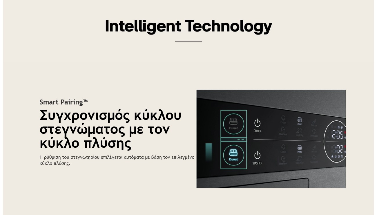 Η ρύθμιση του στεγνωτηρίου επιλέγεται αυτόματα με βάση τον επιλεγμένο κύκλο πλύσης.
