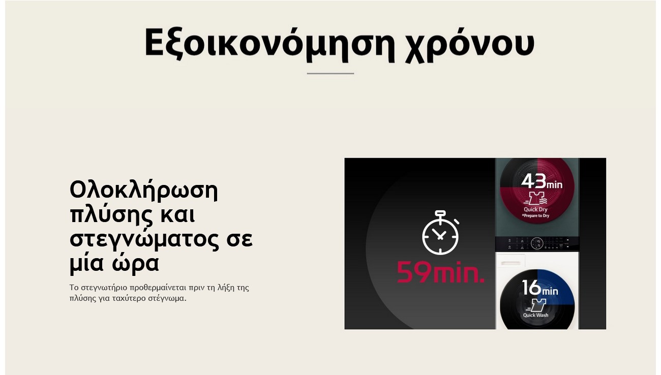 Ολοκλήρωση πλύσης και στεγνώματος σε μία ώρα.