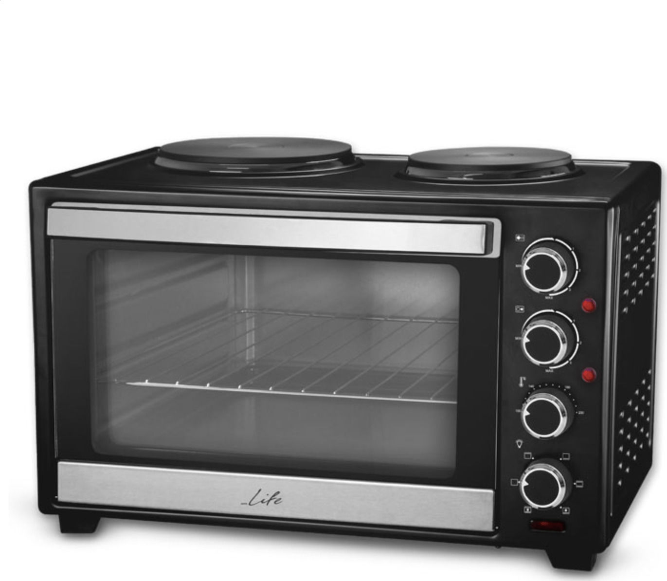 - Πόρτα από διπλό τζάμι ασφαλείας, ανθεκτικό στην θερμότητα, με πρακτική λαβή