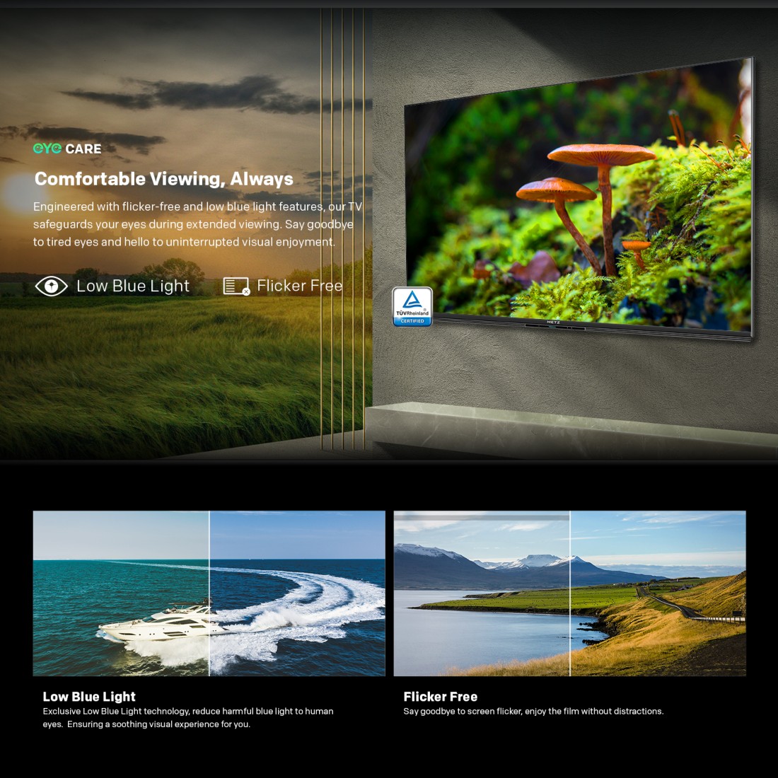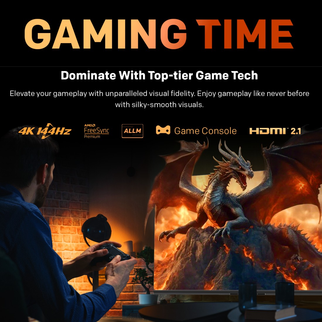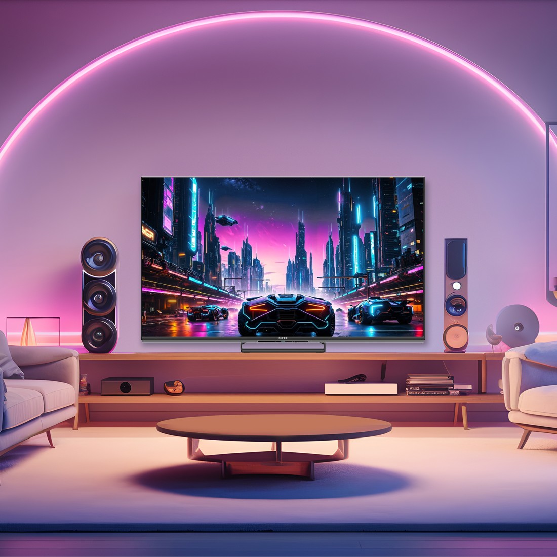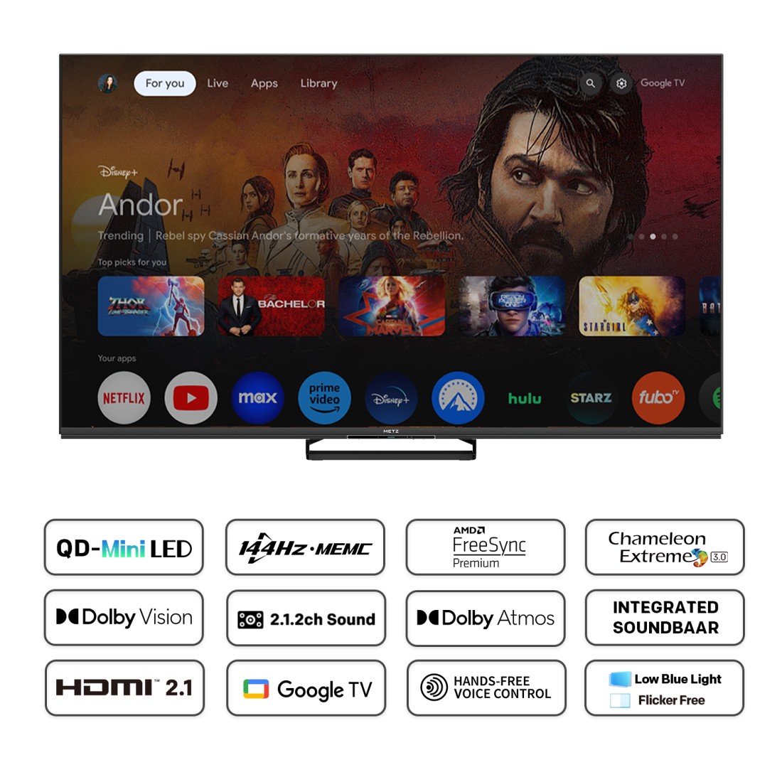 Με οθόνη 65" Inches, MINILED 4K, 144 Hz, με ανάλυση 3840 x 2160. Με λειτουρικό Google TV και ενσωματωμένες εφαρμογές.