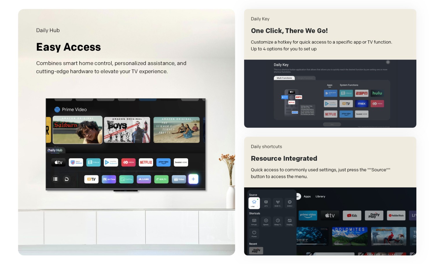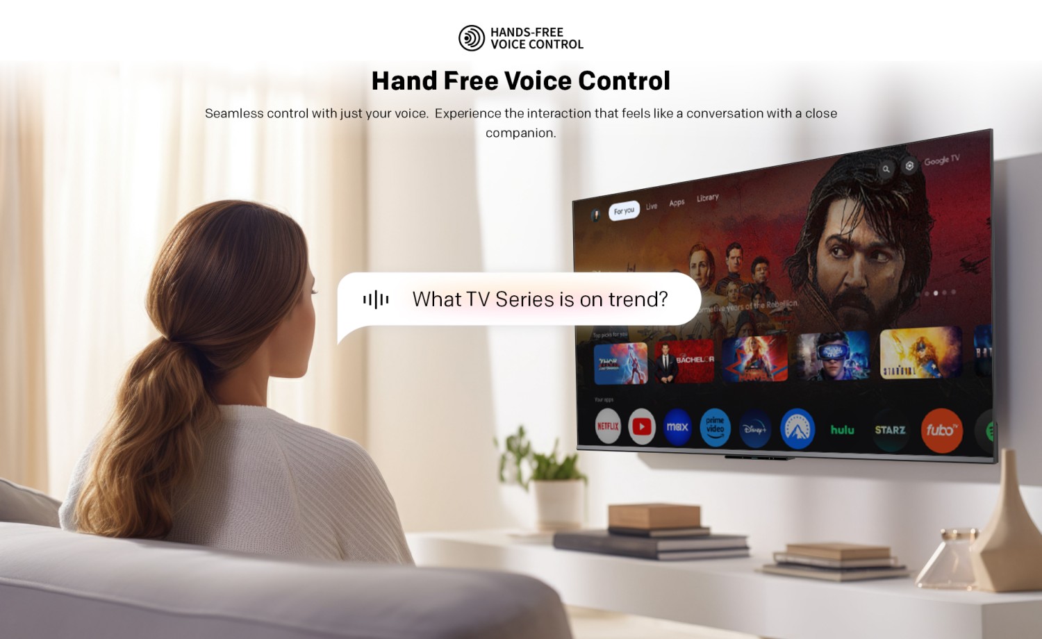 Χάρη στο ενσωματωμένο λειτουργικό σύστημα Google TV, μπορείτε να απολαμβάνετε απρόσκοπτη πρόσβαση σε ένα ευρύ φάσμα υπηρεσιών streaming και ζωντανής τηλεόρασης, όλα ενσωματωμένα σε ένα φιλικό προς το χρήστη περιβάλλον εργασίας.