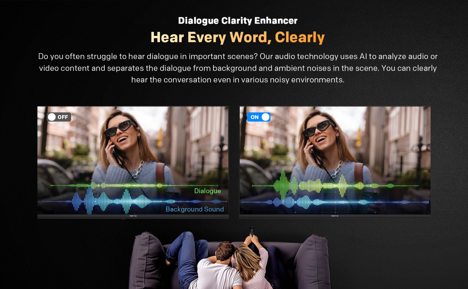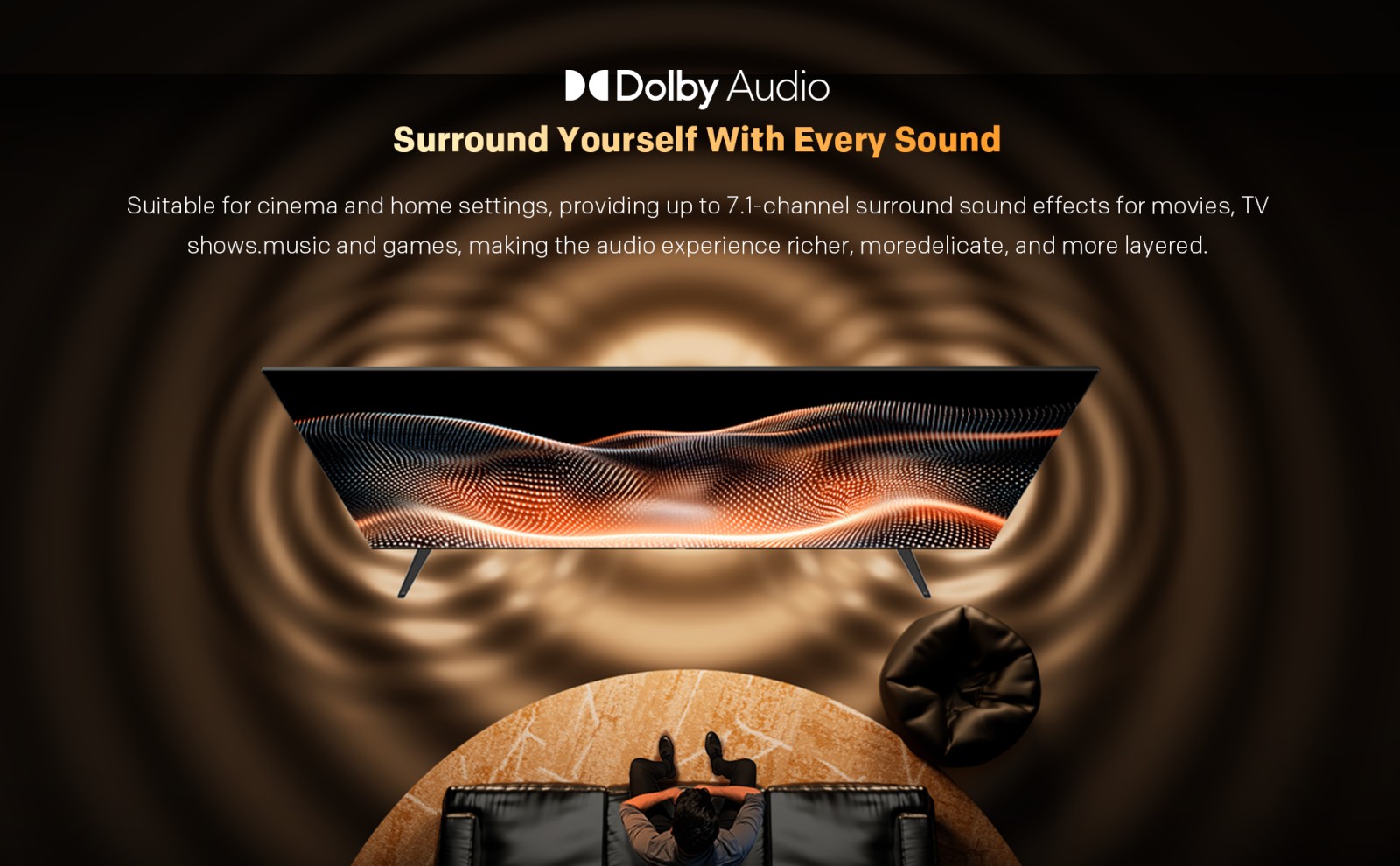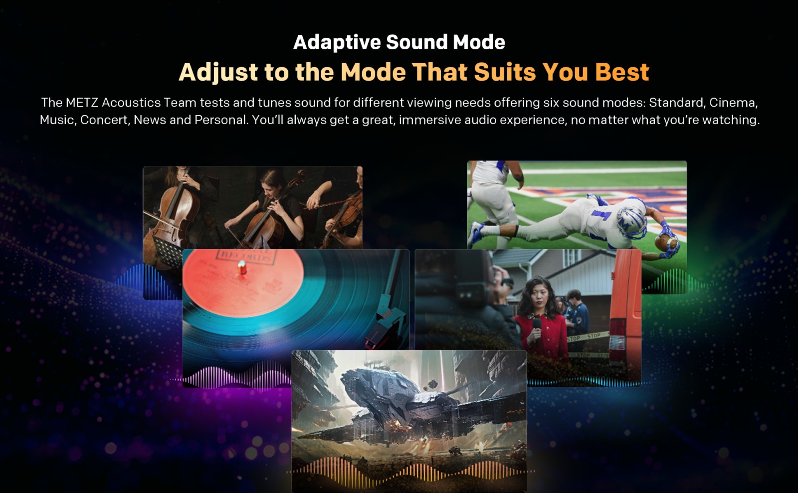 Ακόμη και ο ήχος είναι ευέλικτος: επιλέξτε ανάμεσα σε επτά διαφορετικές λειτουργίες ήχου για να κάνετε το τηλεοπτικό σας πρόγραμμα ευχάριστο τόσο για ακρόαση όσο και για παρακολούθηση.