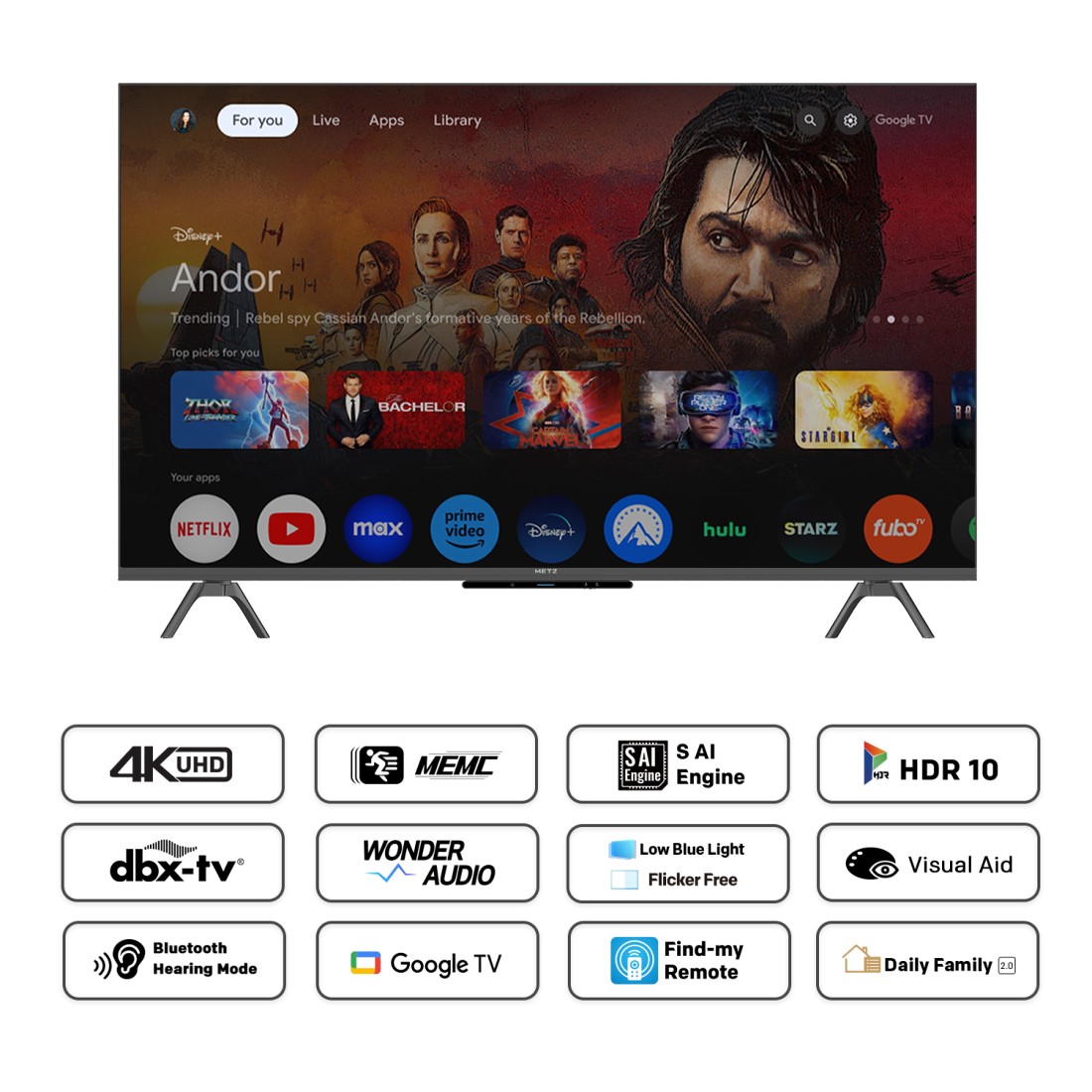 Με το Google TV OS, το πάνελ άμεσου LED και την ανάλυση 4K UHD, προσφέρει εκπληκτική ψυχαγωγία.