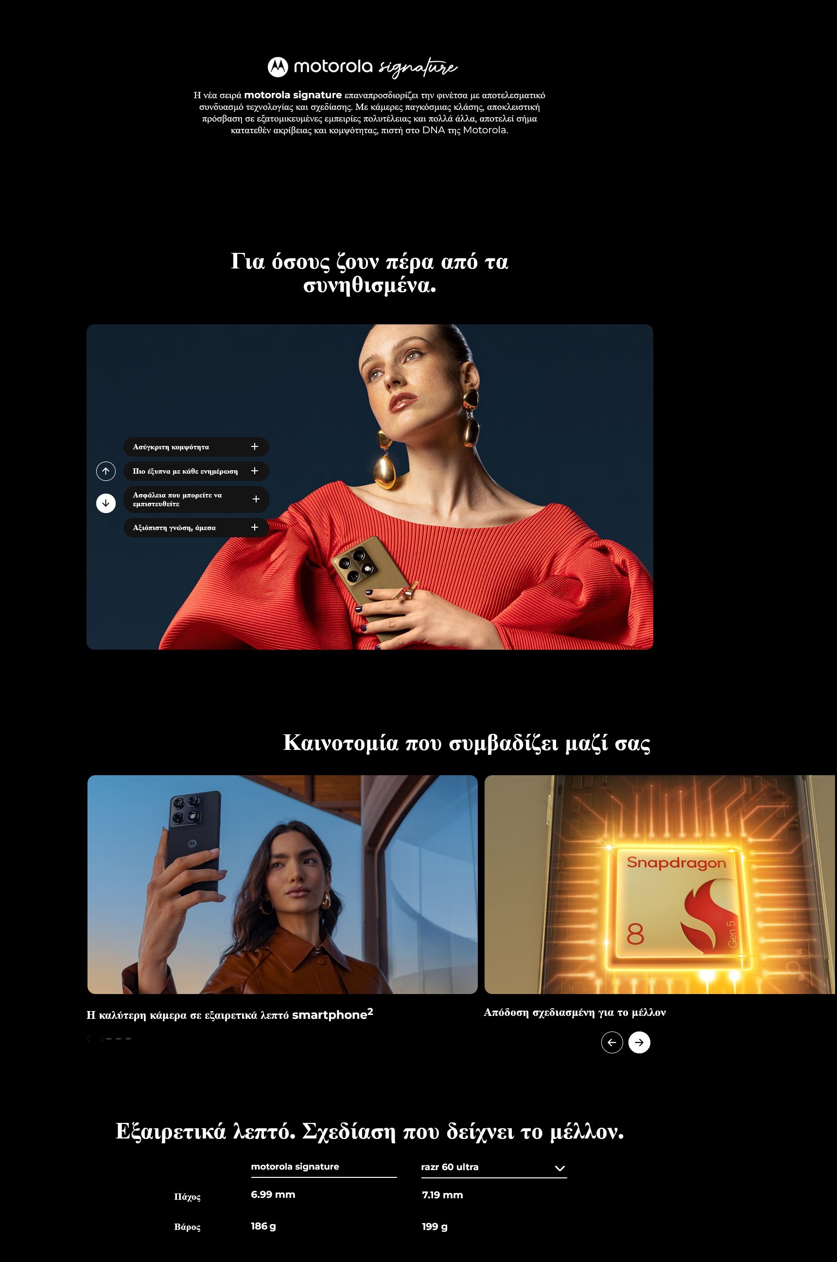 To Motorola Signature αποτελεί τη νέα premium σειρά της Motorola , που συνδυάζει ultra thin σχεδιασμό & κορυφαίες επιδόσεις .