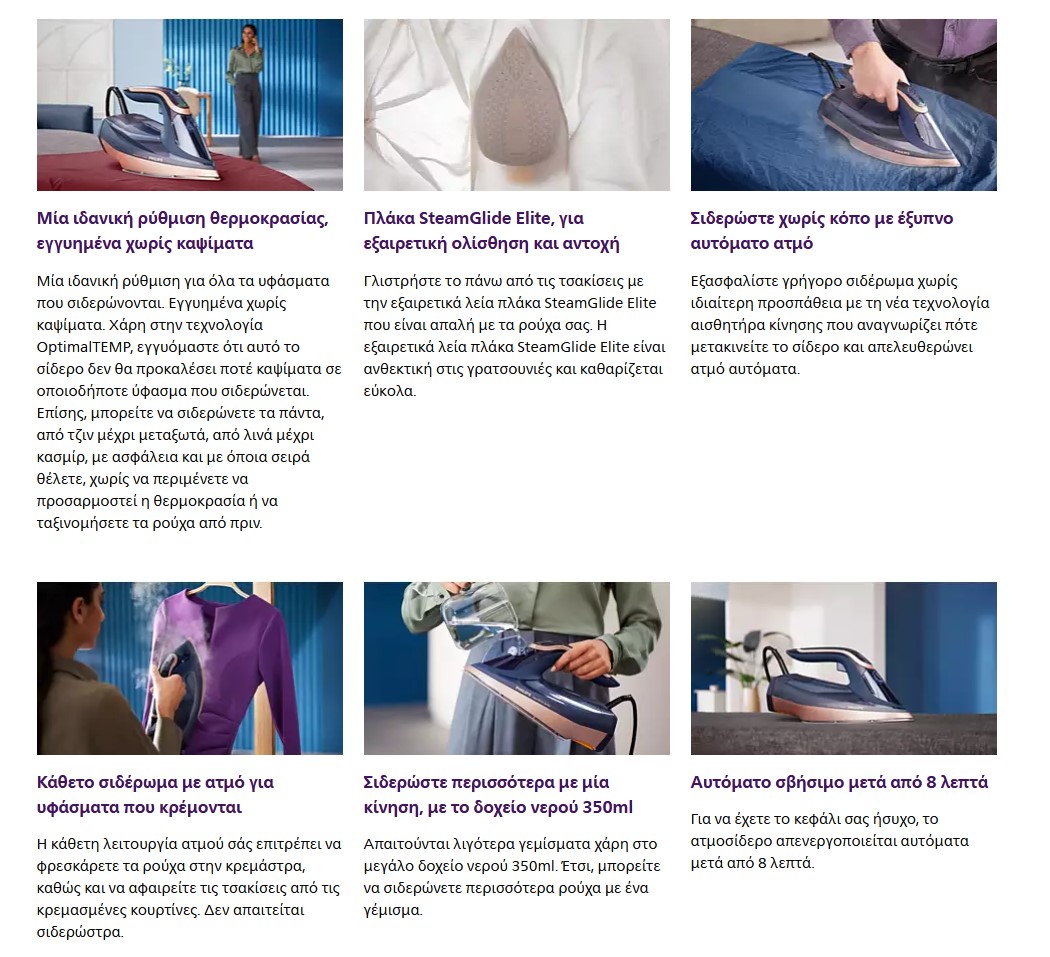Με ισχύ 3000 Watt, συνεχόμενη παροχή ατμού 85 gr/min και πλάκα SteamGlide Elite.