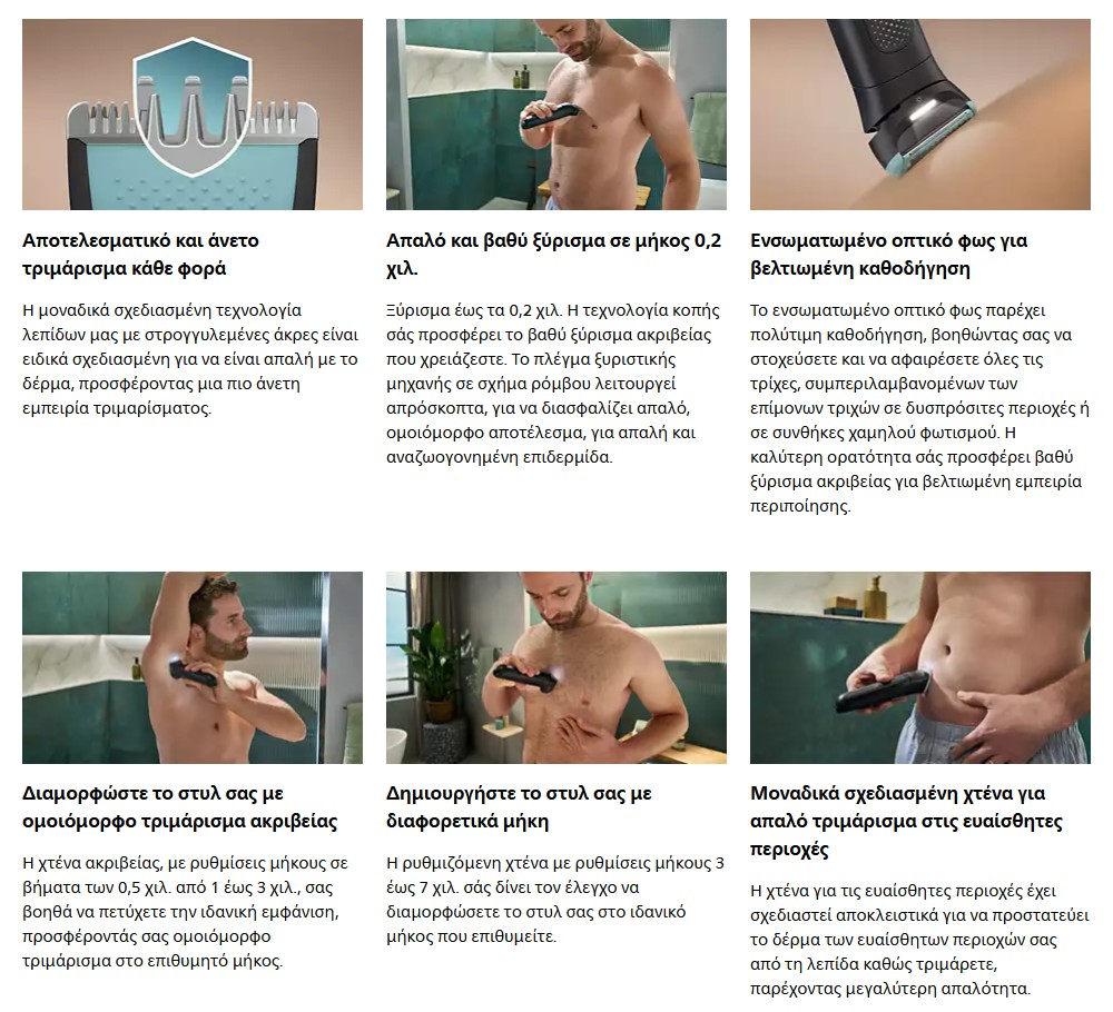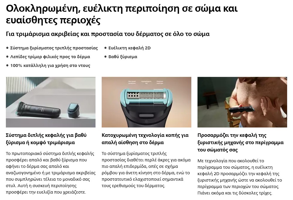 Το μοναδικό σύστημα διπλής κεφαλής σάς επιτρέπει να κάνετε εύκολα εναλλαγή μεταξύ ξυρίσματος και τριμαρίσματος, χωρίς συμβιβασμούς στη φροντίδα της επιδερμίδας.