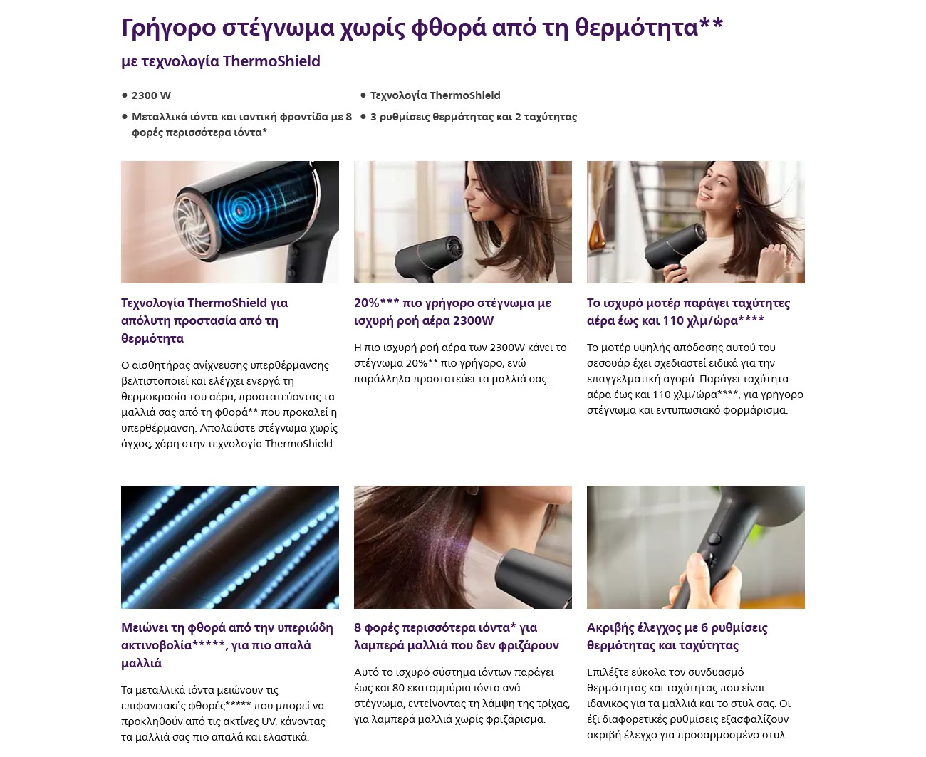 Με ισχύ 2300W, 6 ρυθμίσεις θερμότητας/ταχύτητας και τεχνολογία ThermoShield.