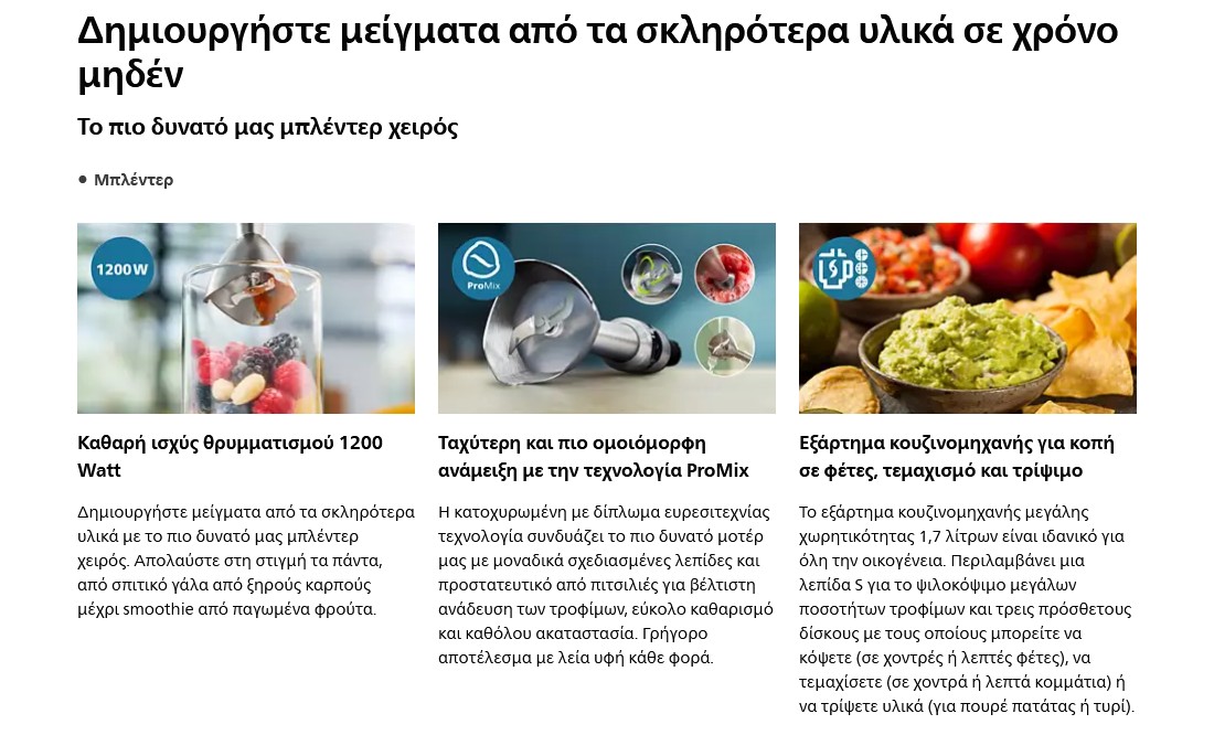 Με 50% περισσότερη ισχύ* για να θρυμματίζει κάθε υλικό, το μπλέντερ χειρός Philips 5000 Series είναι η ιδανική επιλογή για εξαιρετικά και ομοιόμορφα αποτελέσματα. Απολαύστε από κρεμώδεις σούπες μέχρι μεταξένιες σάλτσες, εξερευνώντας νέους τρόπους παρασκευής του φαγητού σας!